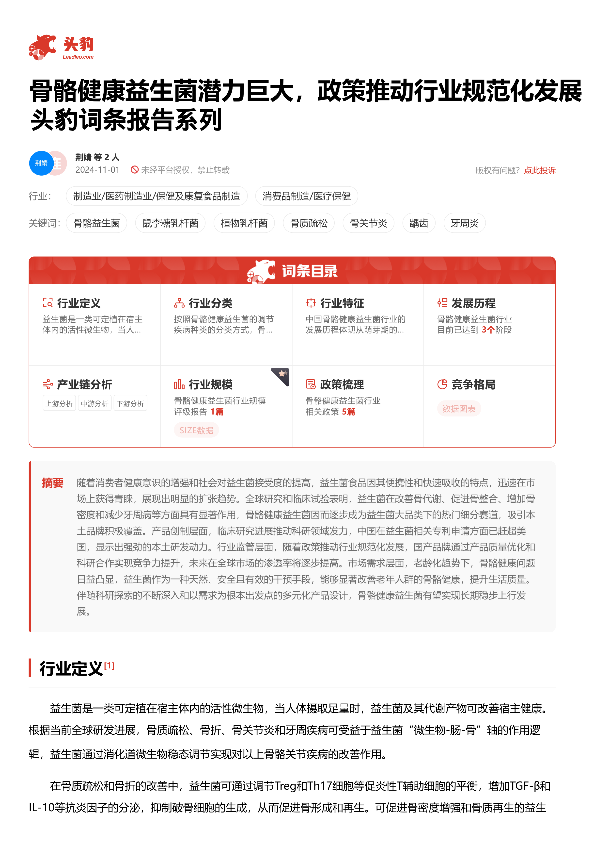骨骼健康益生菌潜力巨大,政策推动行业规范化发展 头豹词条报告系列