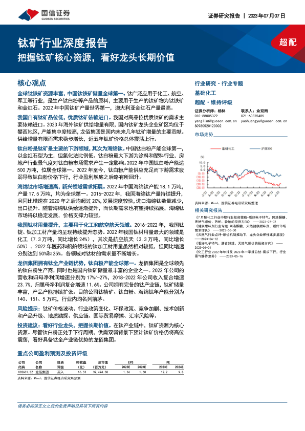 钛矿行业深度报告:把握钛矿核心资源,看好龙头长期价值