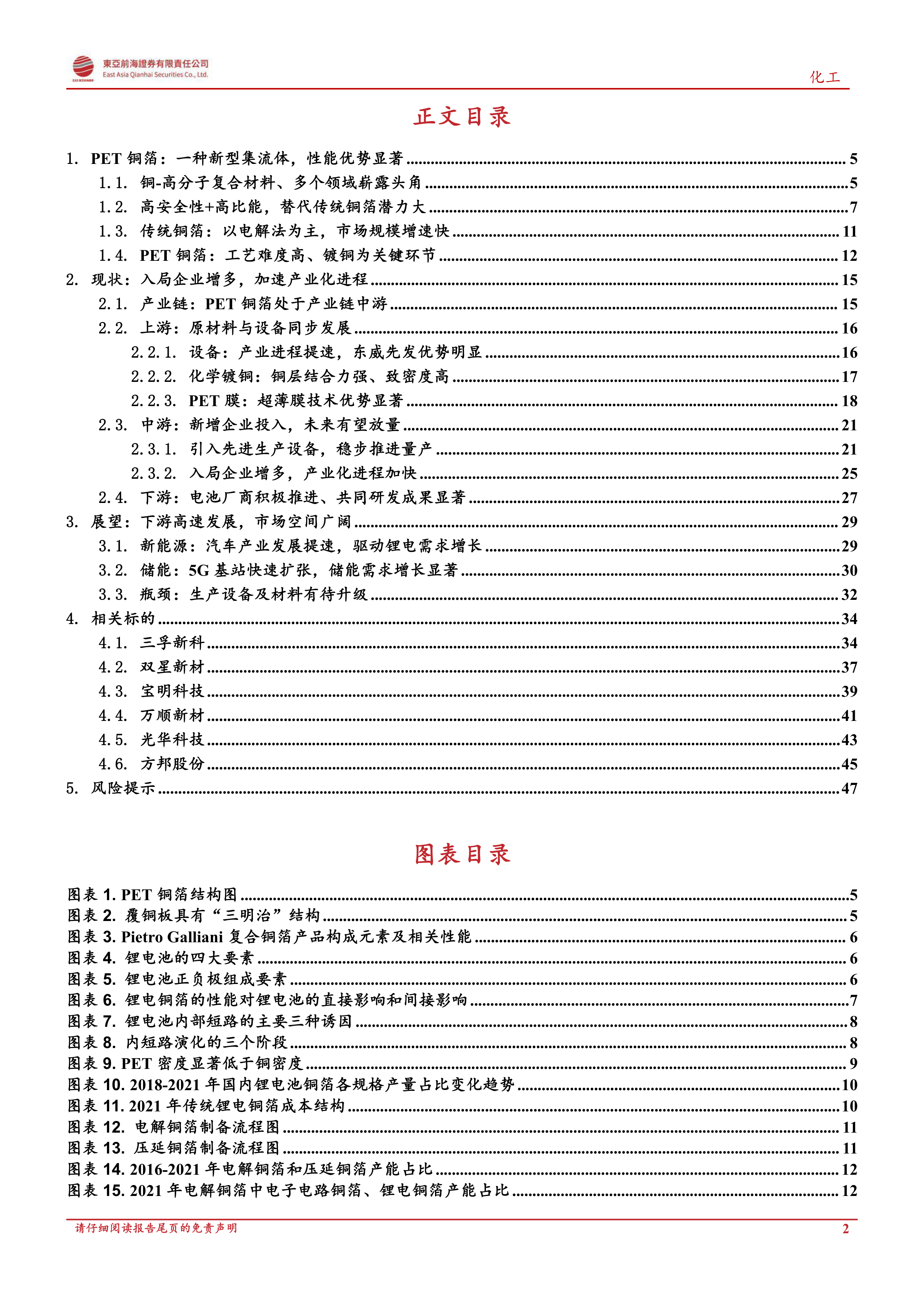 报告最后列出了投资PET铜箔产业链的潜在风险,包括复合铜箔量产投产进度不及预期、原材料价格异常波动以及新能源汽车需求增长放缓等。
