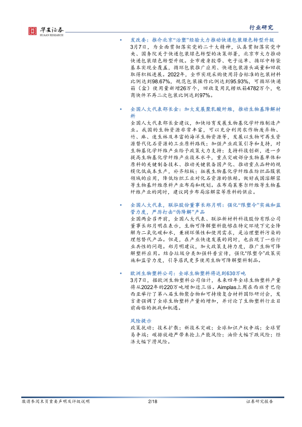 全国人大代表,联泓股份董事长郑月明:强化“限塑令”实施和监管力度,严厉打击“伪降解”产品