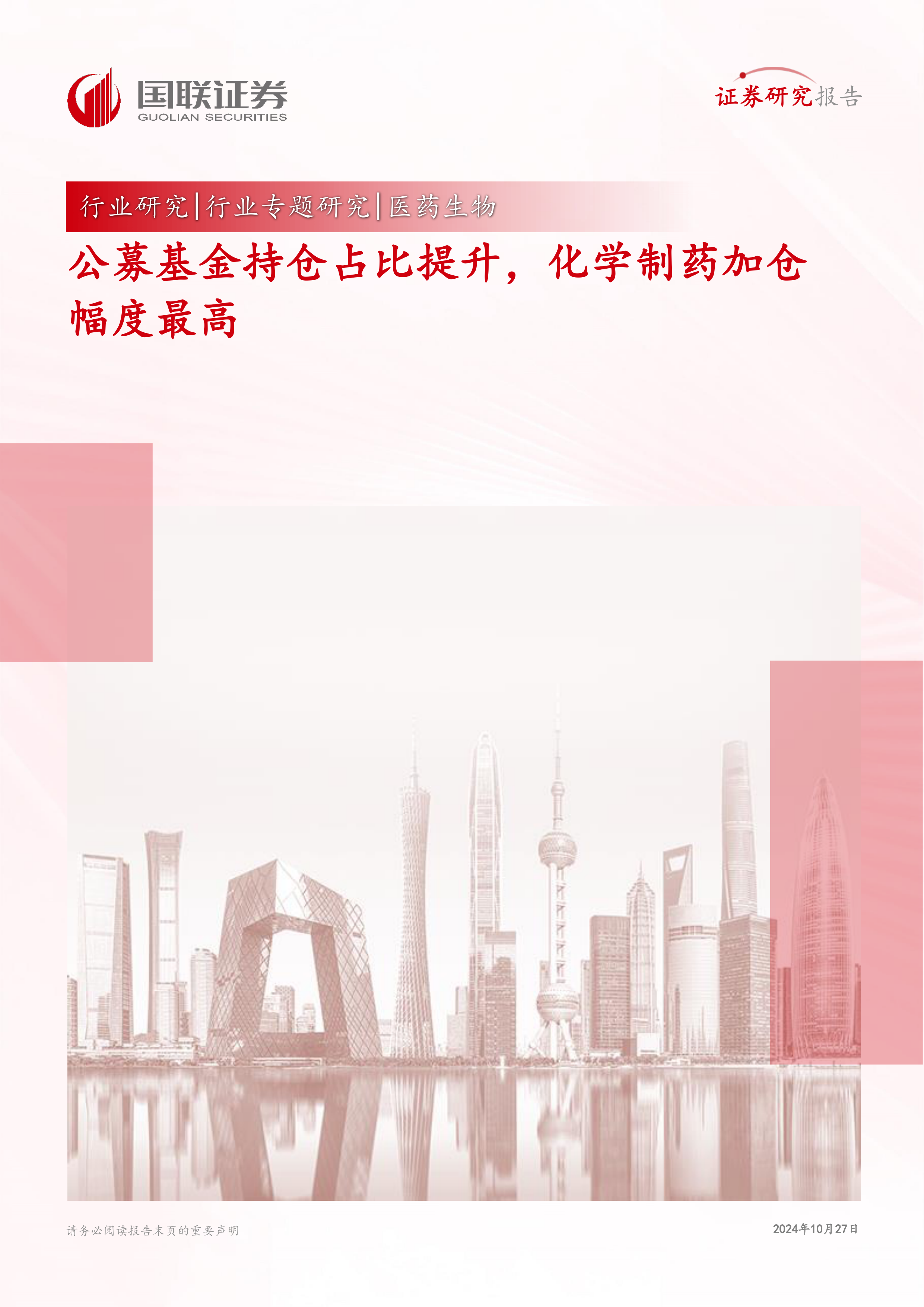 医药生物行业专题研究:公募基金持仓占比提升,化学制药加仓幅度最高