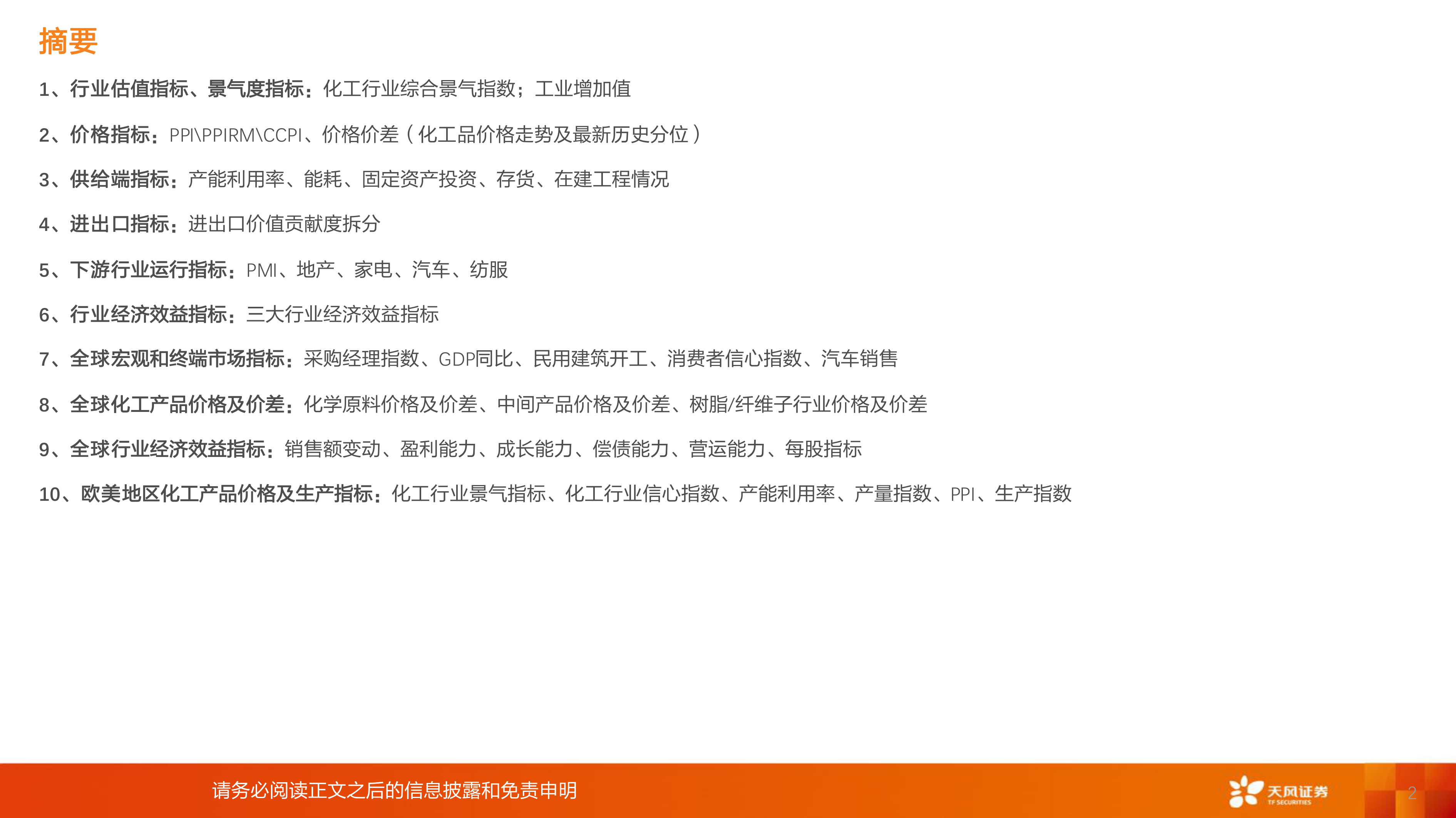报告分析了PMI、地产、家电、汽车、纺服等下游行业的运行情况,以评估化工产品需求的变动趋势。