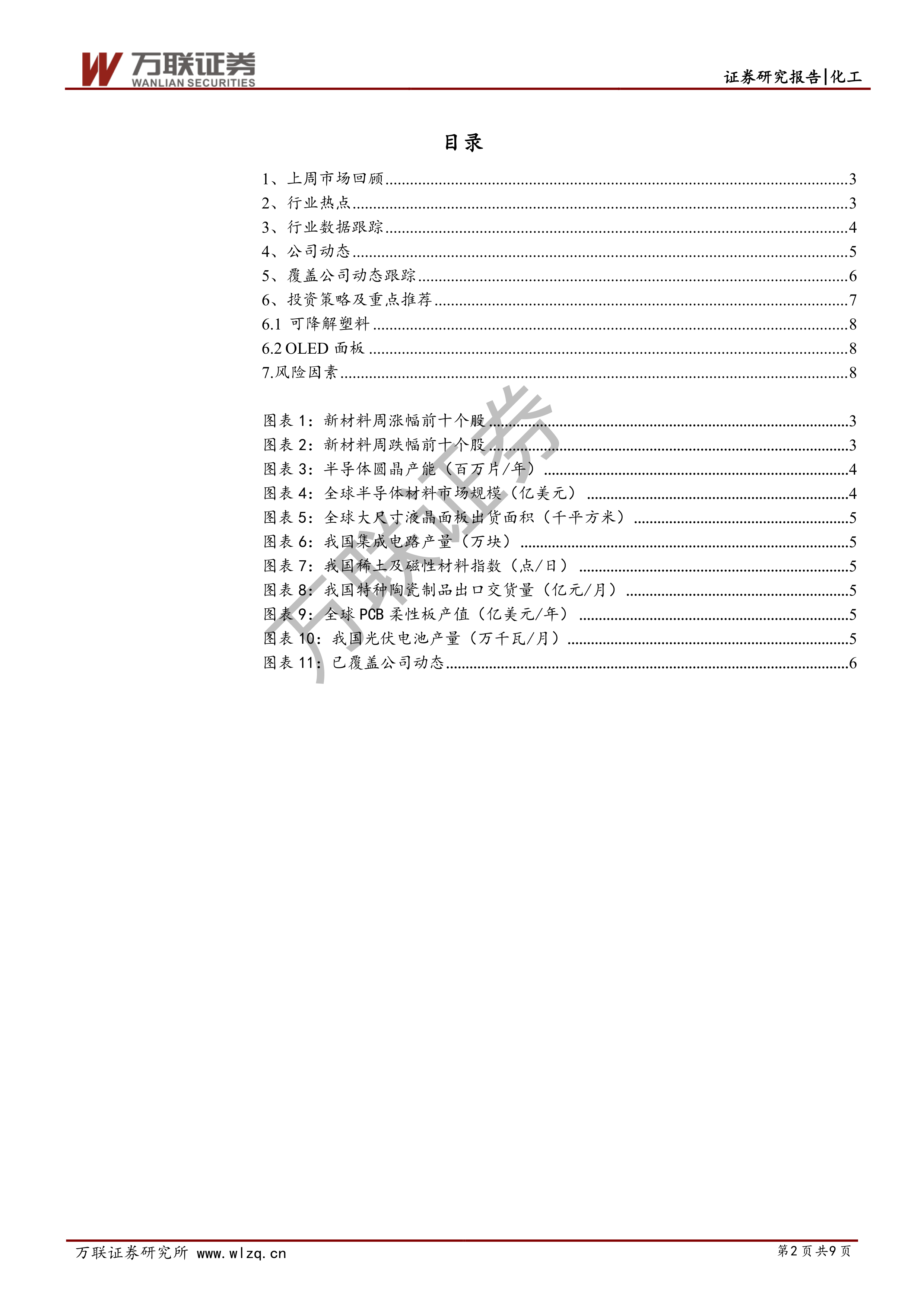 风险因素:国内部分地区疫情二次抬头、可降解塑料产能释放不及预期、OLED产业链国产替代化进程不及预期。