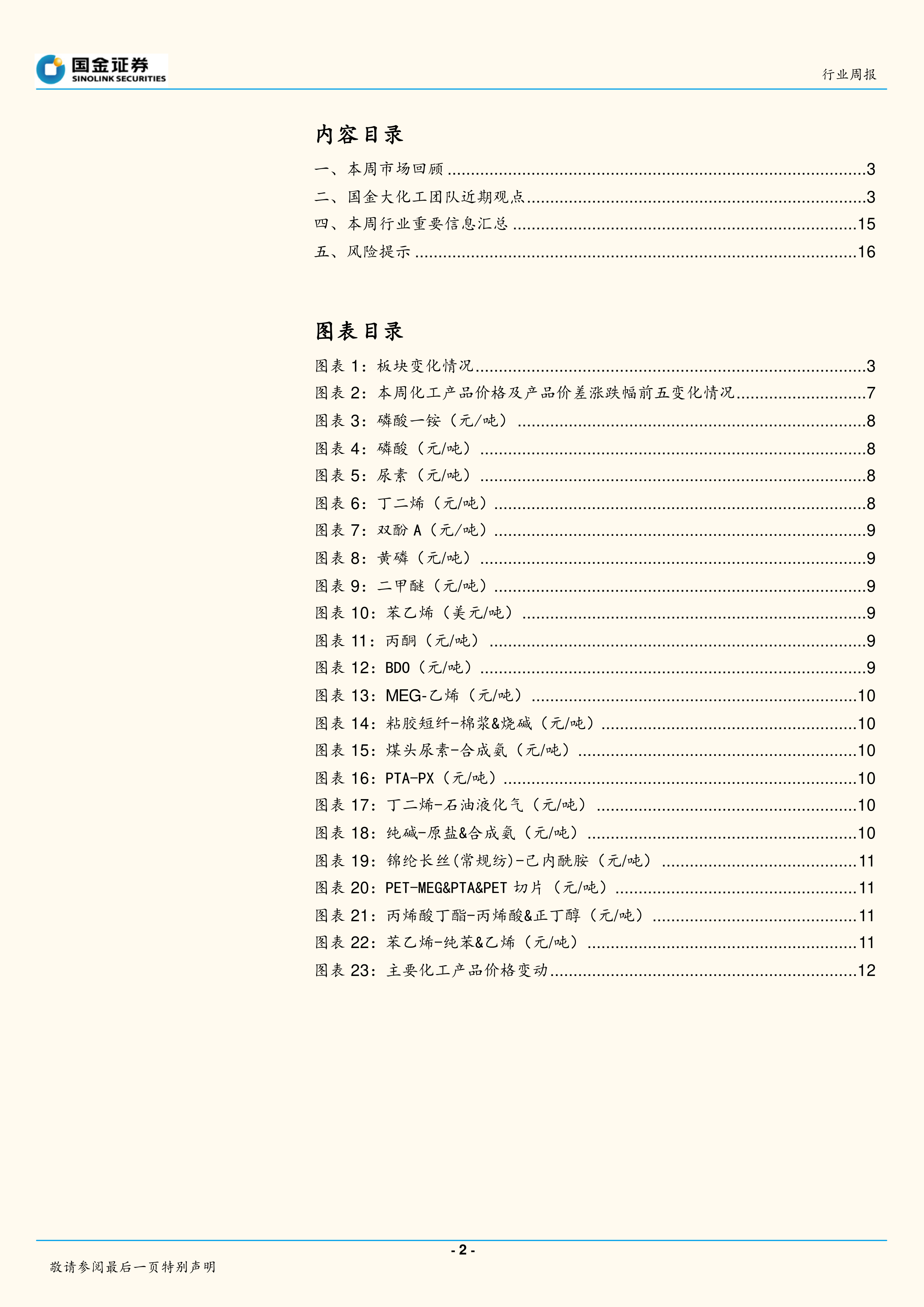 本报告对化工行业近期市场表现进行了全面回顾,并对主要化工产品价格走势进行了分析预测。报告认为,在当前市场环境下,投资策略应更加注重估值合理性和业绩持续兑现能力,关注成长股和具备稀缺资源量增逻辑的强周期标的,但需谨慎评估风险。 报告同时提供了具体的投资组合建议和风险提示,为投资者提供了参考依据。 报告中大量的数据图表直观地展现了市场变化和产品价格波动,增强了分析的客观性和说服力。