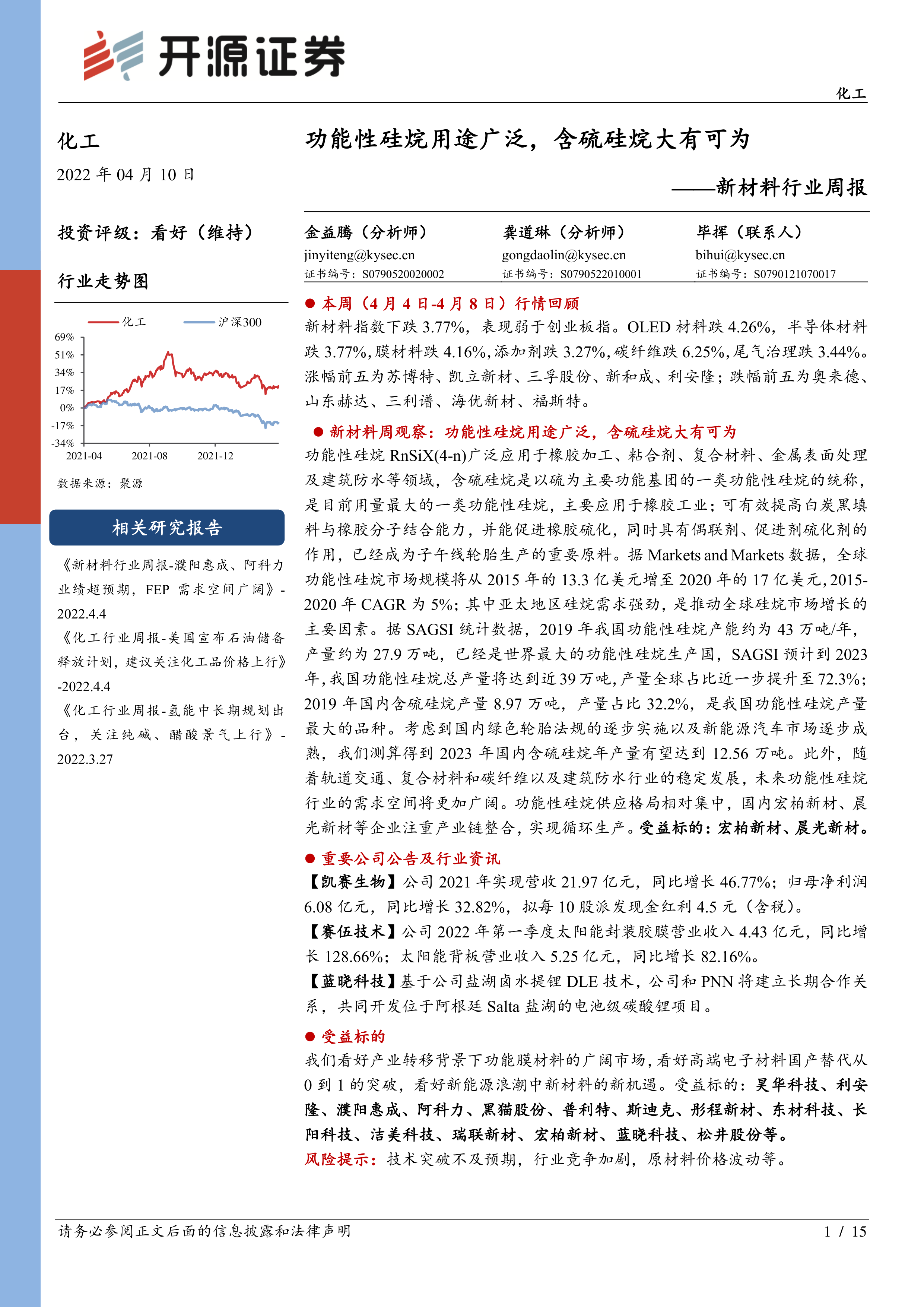 新材料周观察: 功能性硅烷用途广泛,含硫硅烷大有可为
