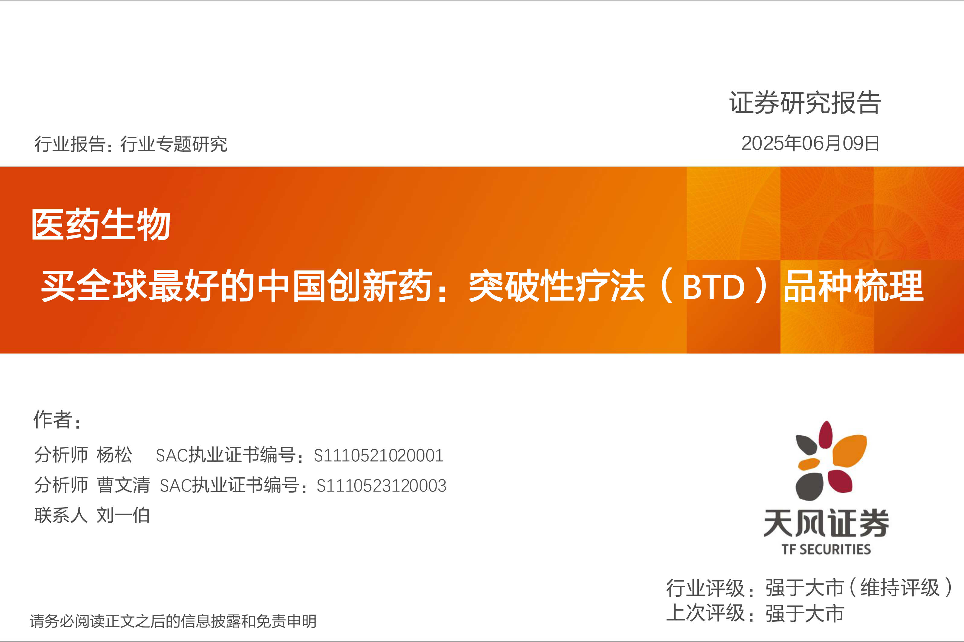 买全球最好的中国创新药:突破性疗法(BTD)品种梳理
