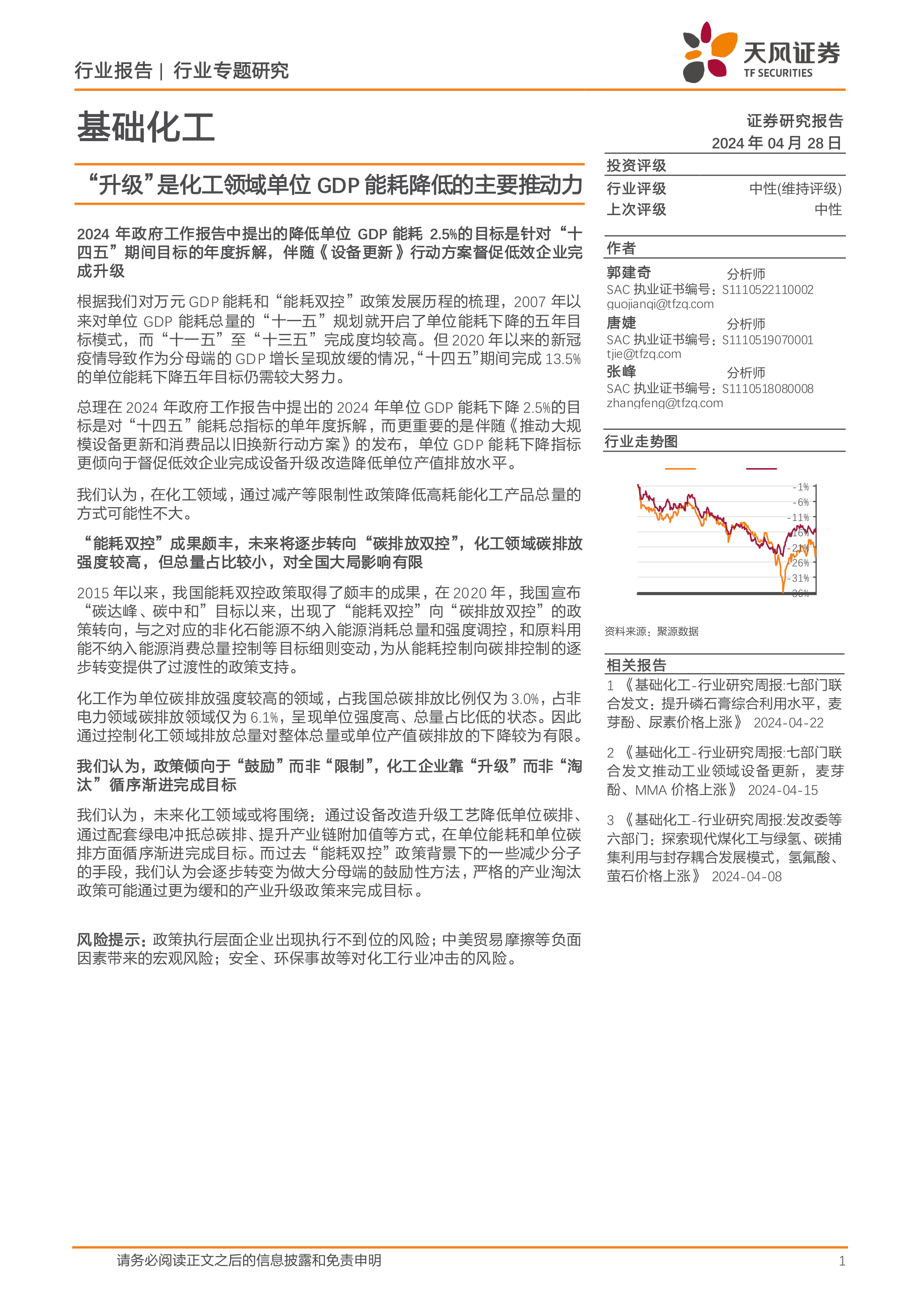 基础化工行业专题研究:“升级”是化工领域单位GDP能耗降低的主要推动力