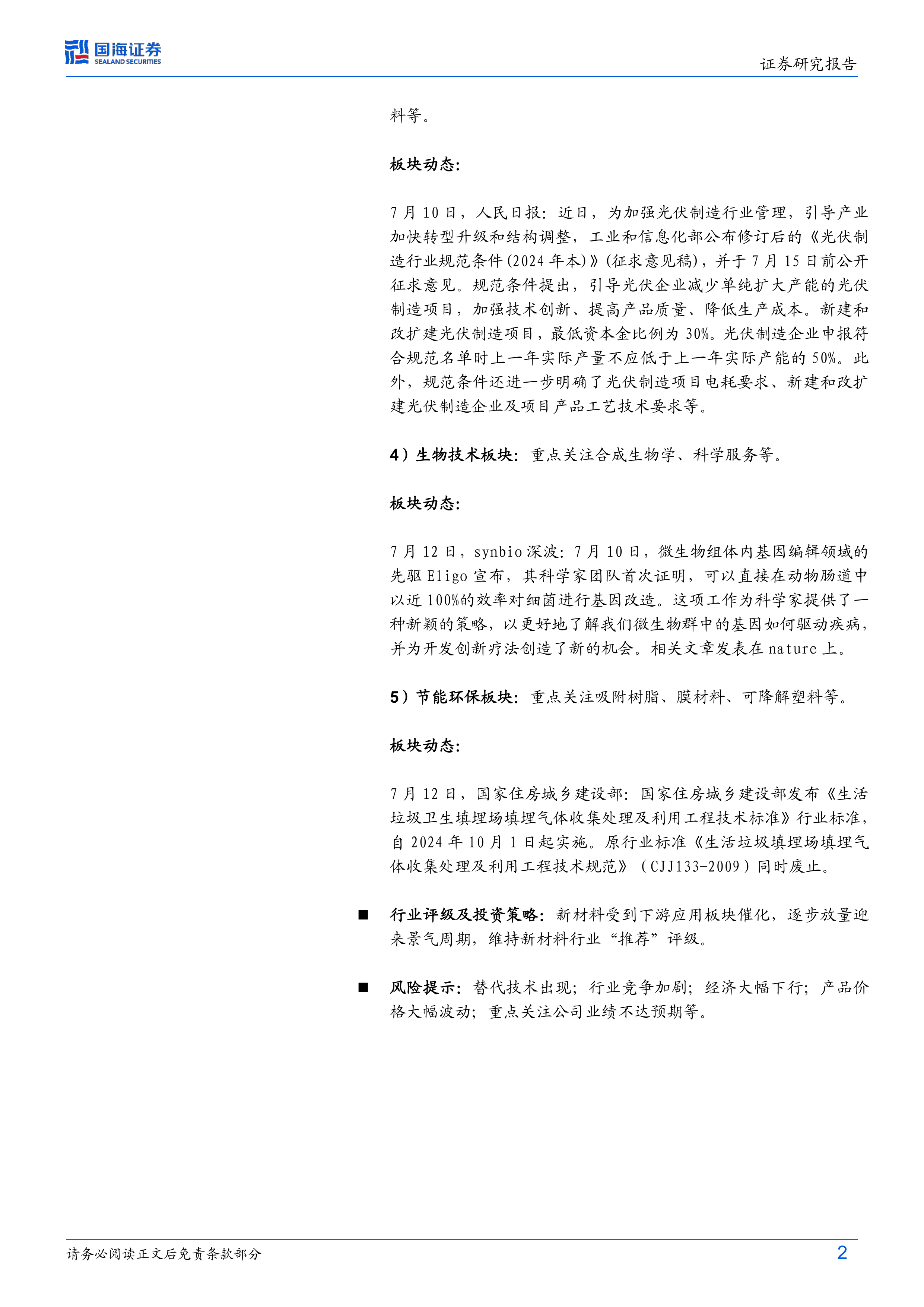 行业评级及投资策略:新材料受到下游应用板块催化,逐步放量迎来景气周期,维持新材料行业“推荐”评级。
