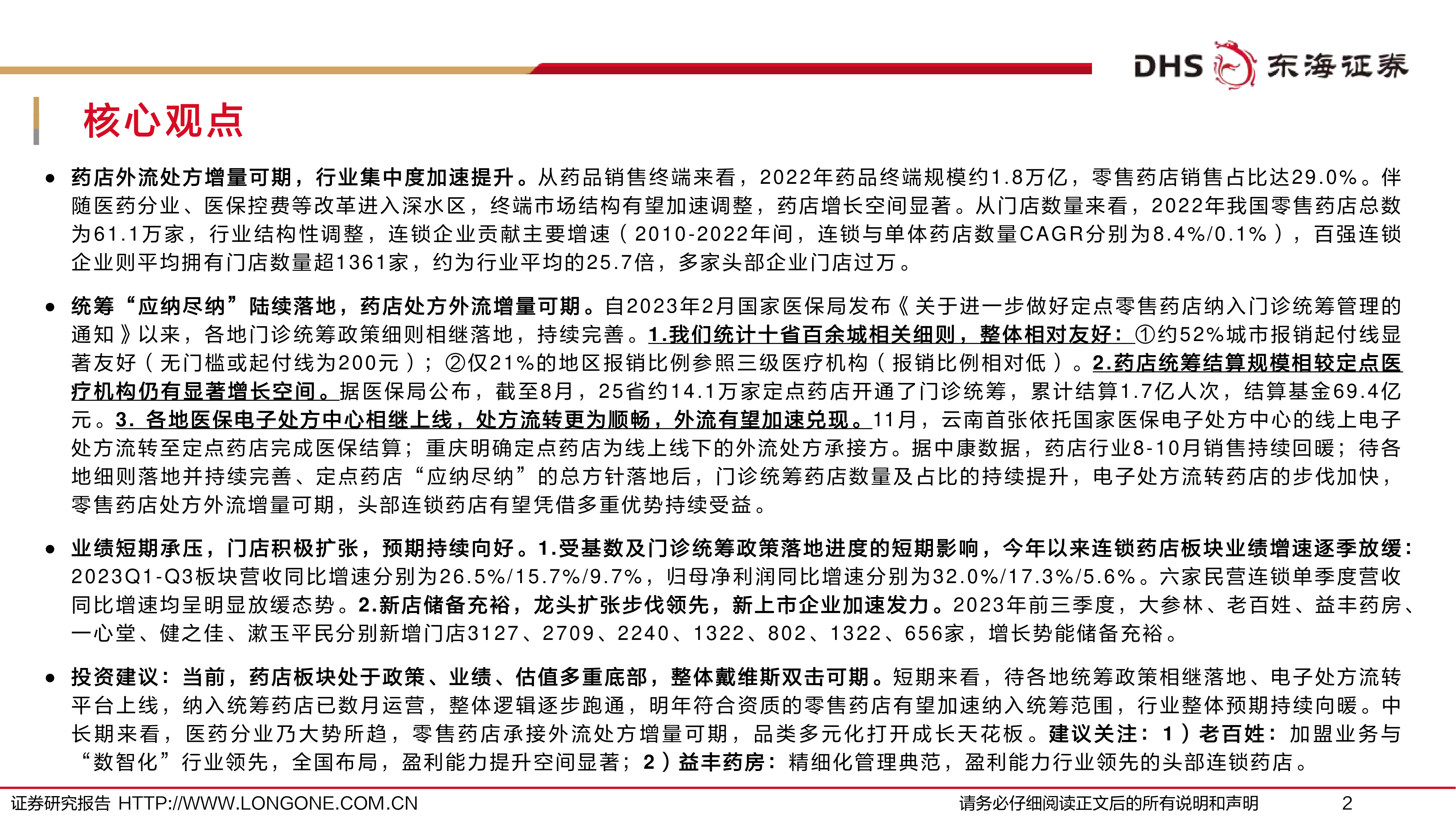药店行业报告:统筹持续推进,门店积极扩张,底部反转可期
