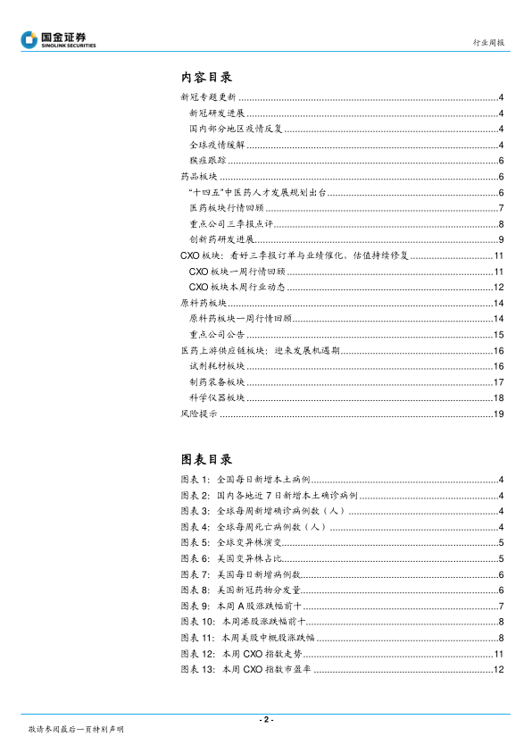 本报告通过对市场数据、疫情动态、医药板块三季报业绩以及行业发展趋势的综合分析,认为医药板块存在显著的投资机会。 报告重点关注了药品、CXO、原料药及医药上游供应链等多个细分领域,并对未来发展趋势进行了展望,同时提示了潜在的投资风险。 投资者应根据自身风险承受能力和投资目标,谨慎决策。 医保谈判结果、疫情发展以及政策变化等因素都将对医药板块的未来走势产生重要影响,需要持续关注。