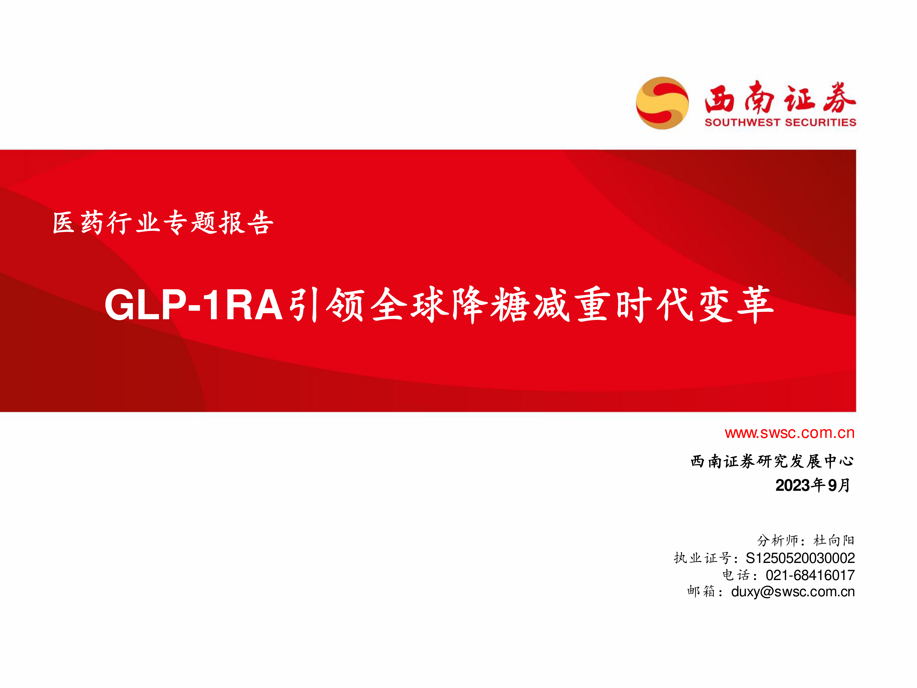 医药行业专题报告:GLP-1RA引领全球降糖减重时代变革