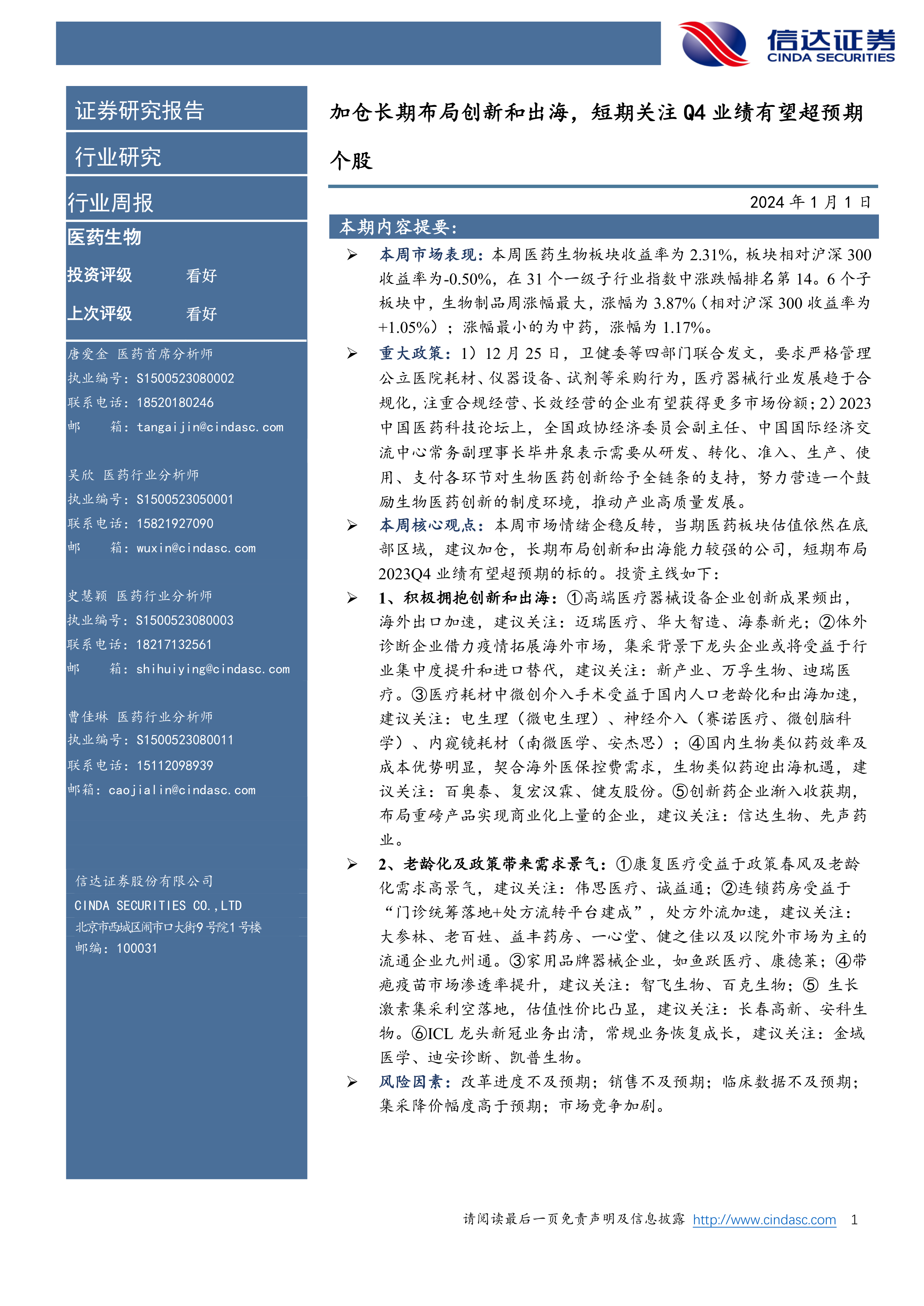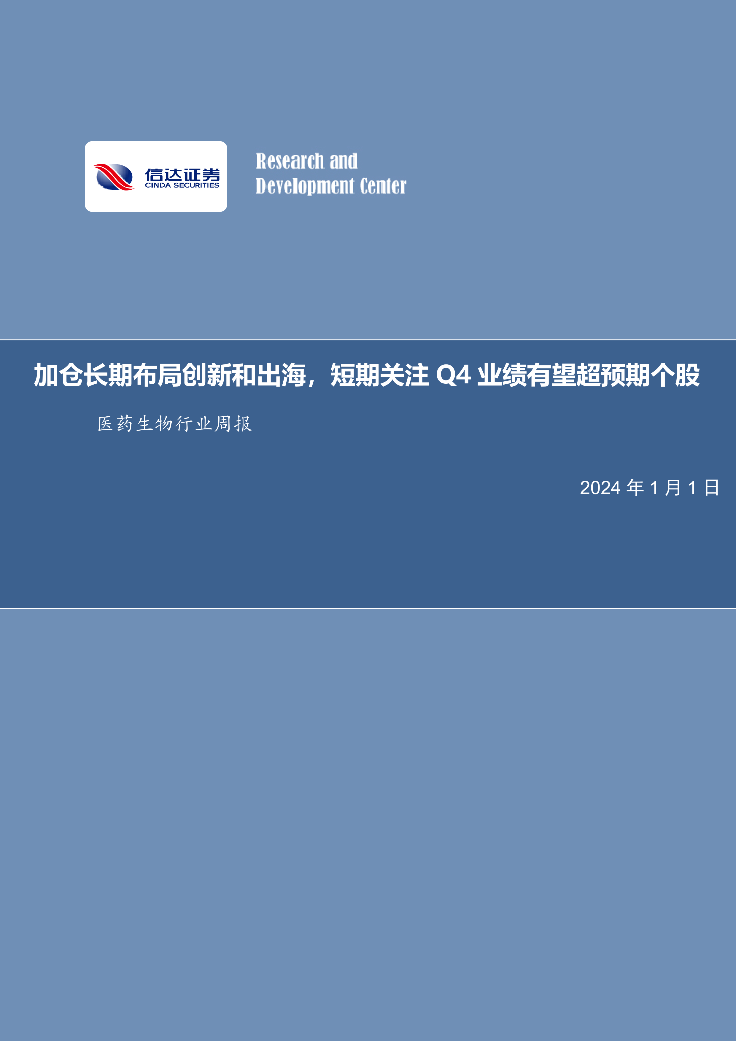医药生物行业周报:加仓长期布局创新和出海,短期关注Q4业绩有望超预期个股