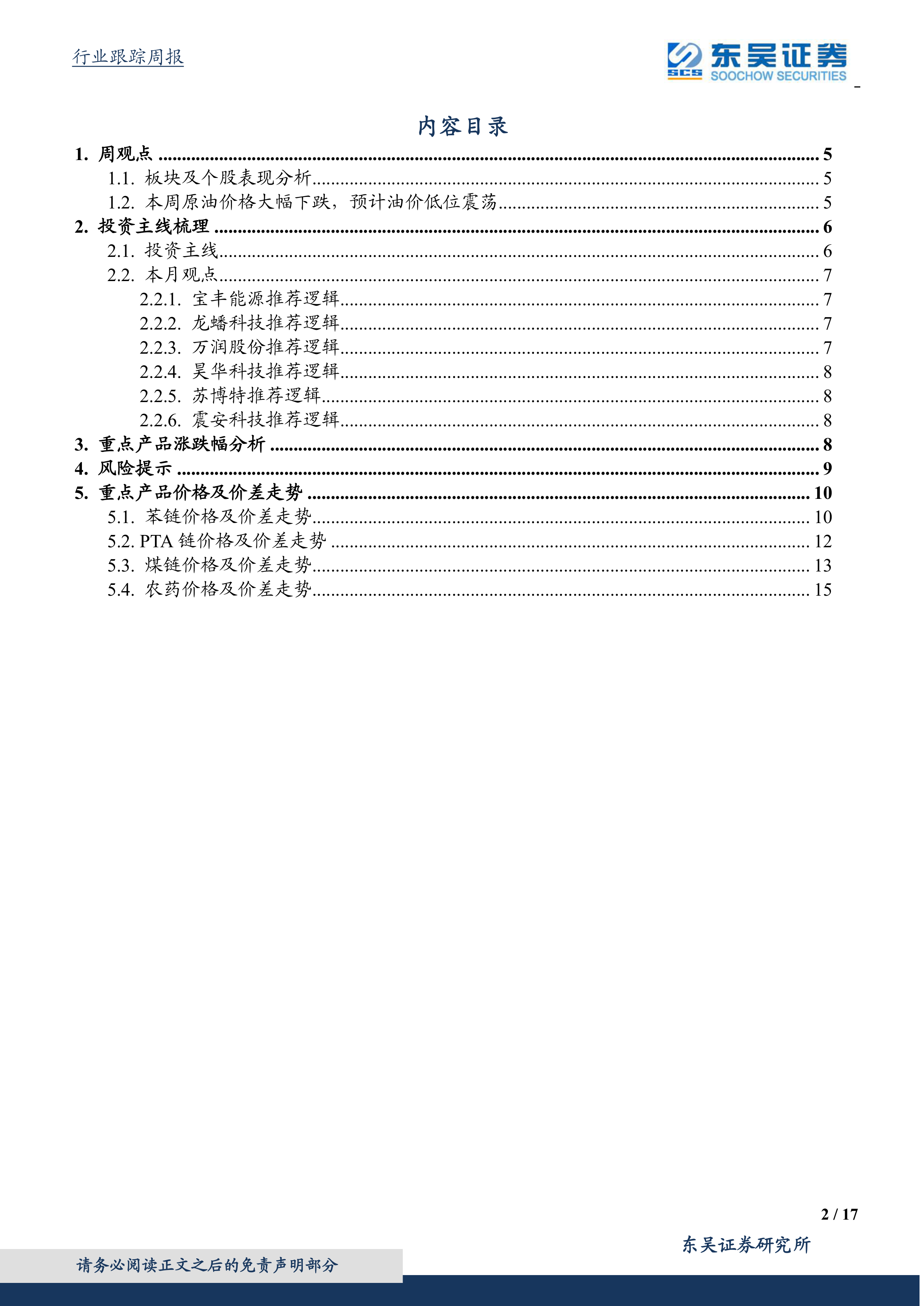 报告梳理了化工行业的投资主线,主要包括: