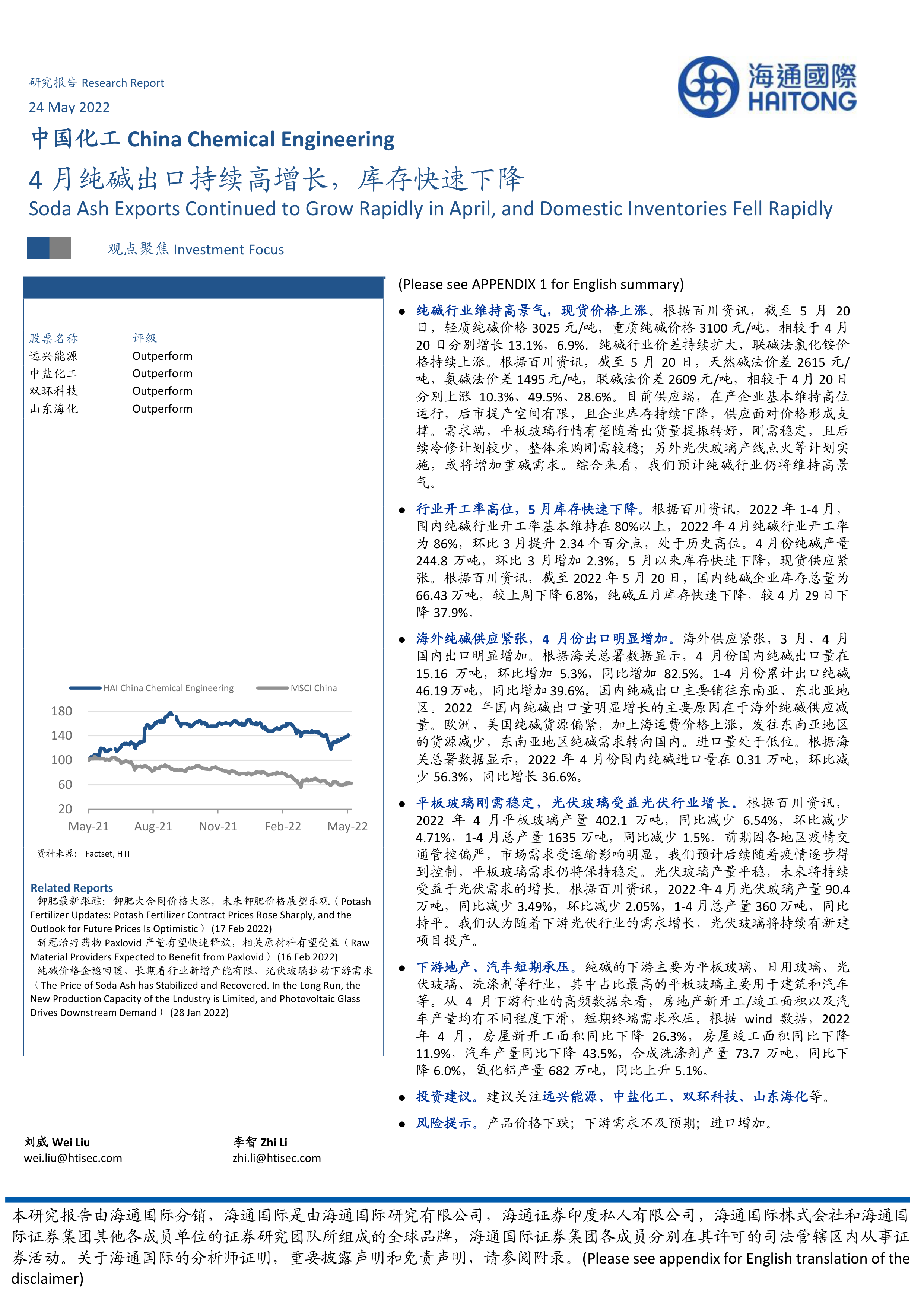 中国化工:4月纯碱出口持续高增长,库存快速下降