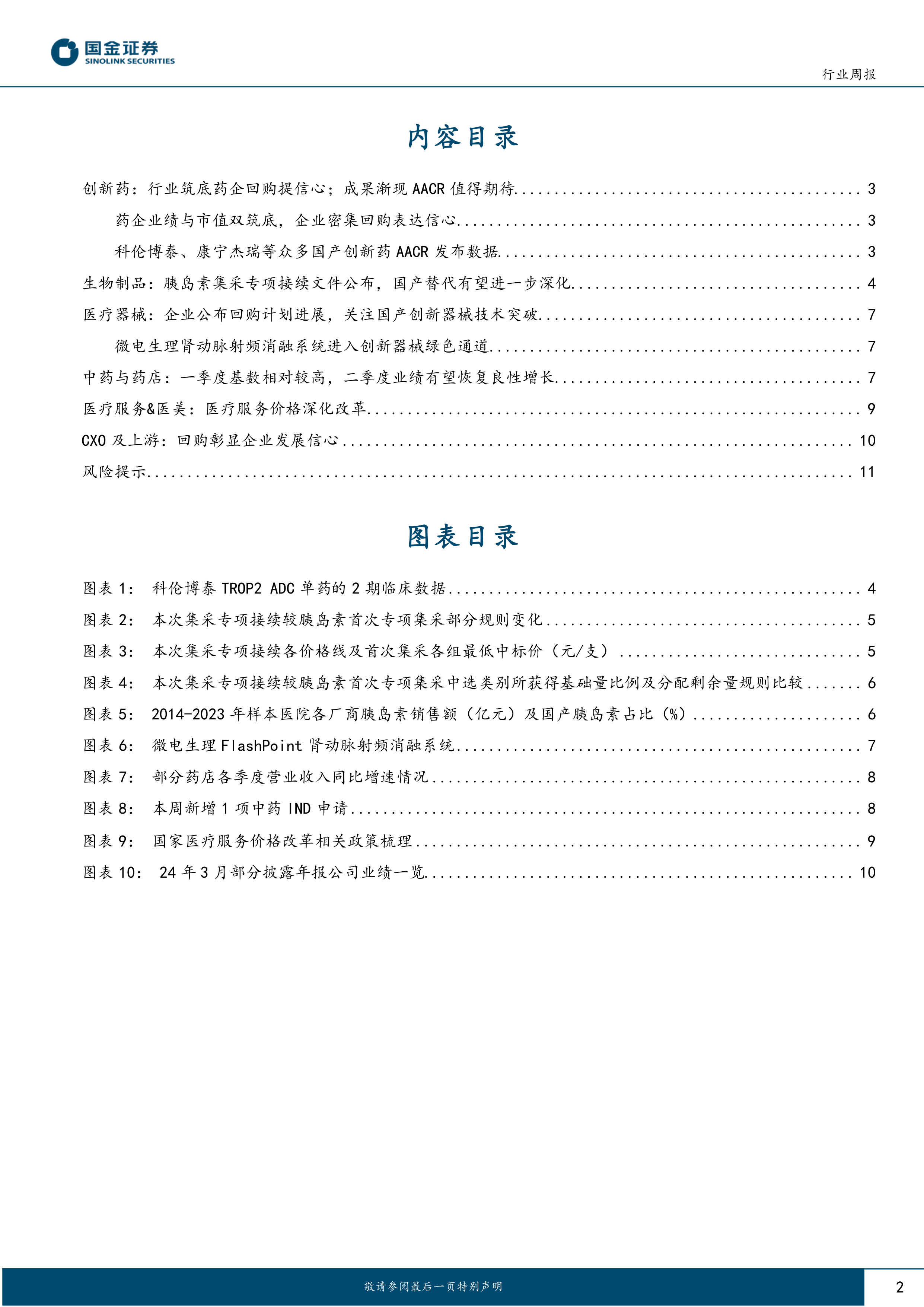 本报告的核心观点是:医药板块在经历了低谷期后,2024年有望迎来复苏和增长。主要驱动力包括:胰岛素集采专项接续带来的市场稳定预期;AACR年会公布的国内创新药数据,增强市场信心;以及国家政策对科技创新和技术改造的支持,将拉动医疗设备采购需求。投资建议为关注中药和药店、创新药出海以及院内高性价比药品器械三大主线。