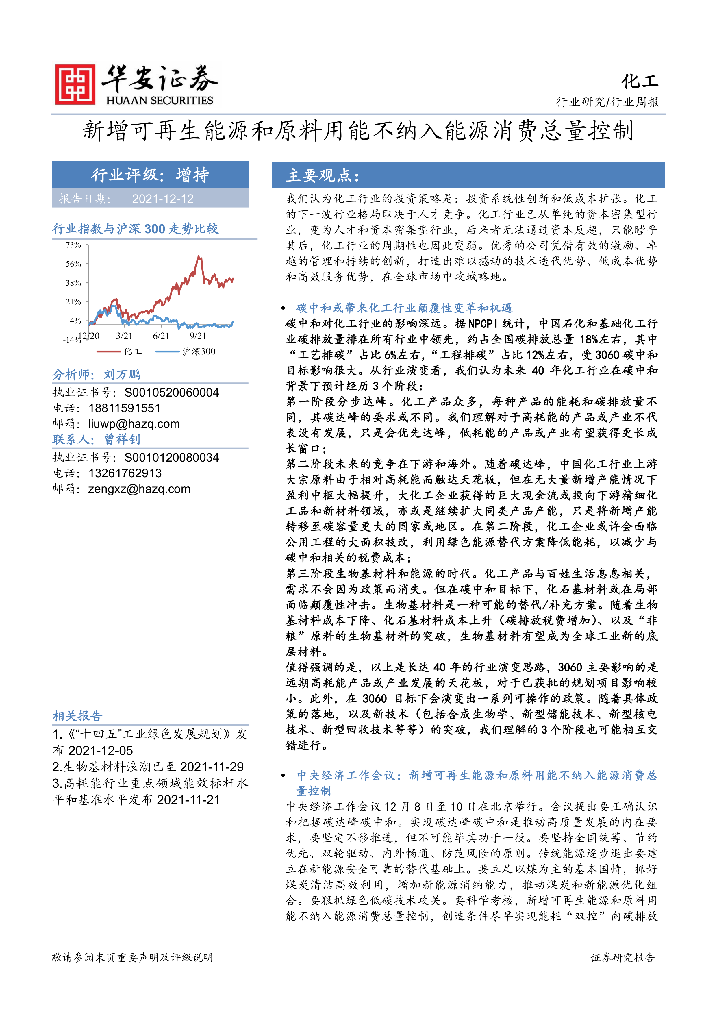 化工行业周报:新增可再生能源和原料用能不纳入能源消费总量控制