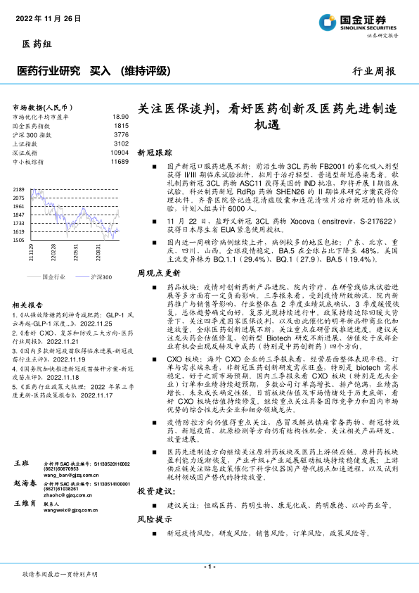 医药行业研究:关注医保谈判,看好医药创新及医药先进制造机遇