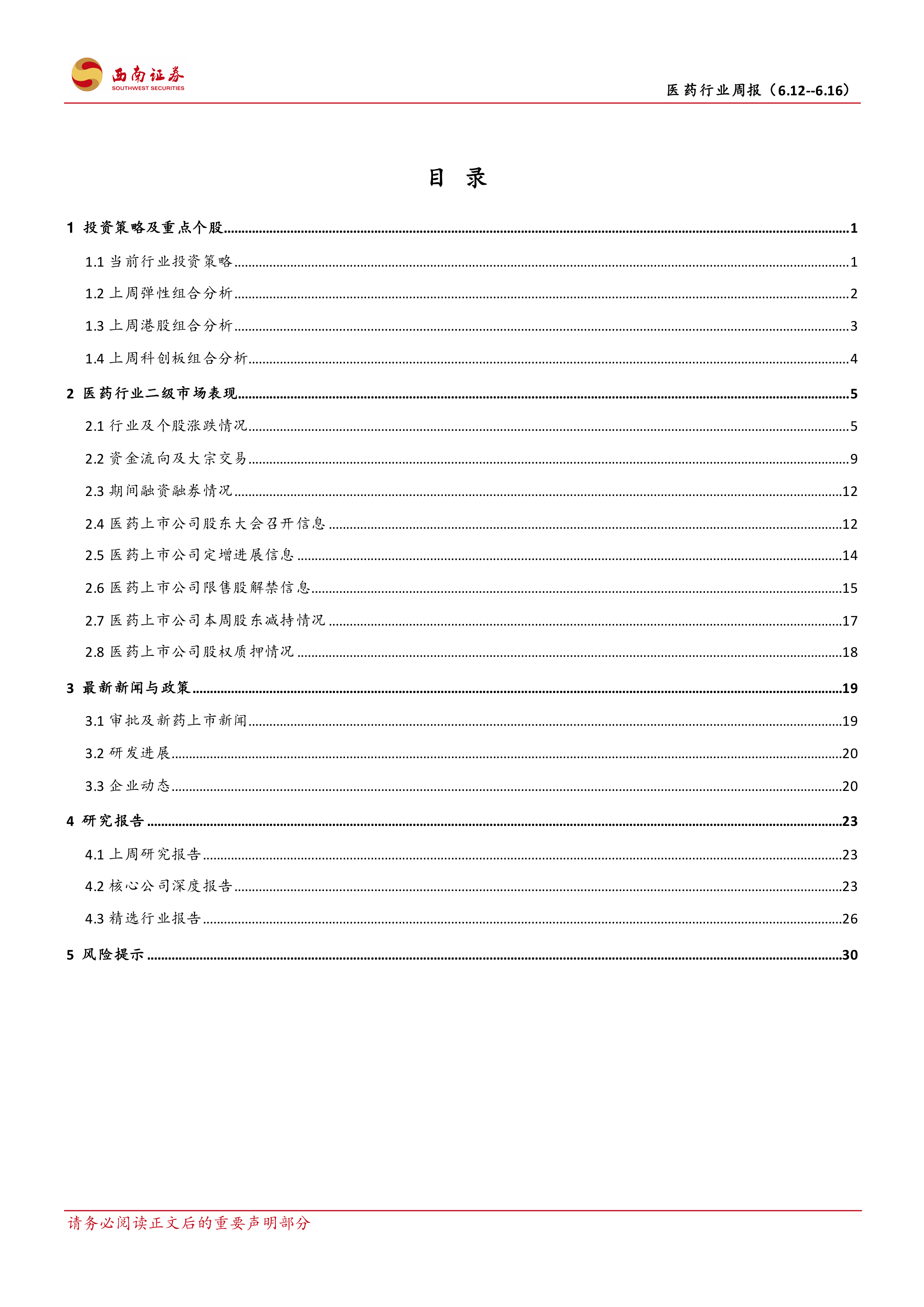 风险提示:医药行业政策风险超预期;研发进展不及预期风险;业绩不及预期风险。