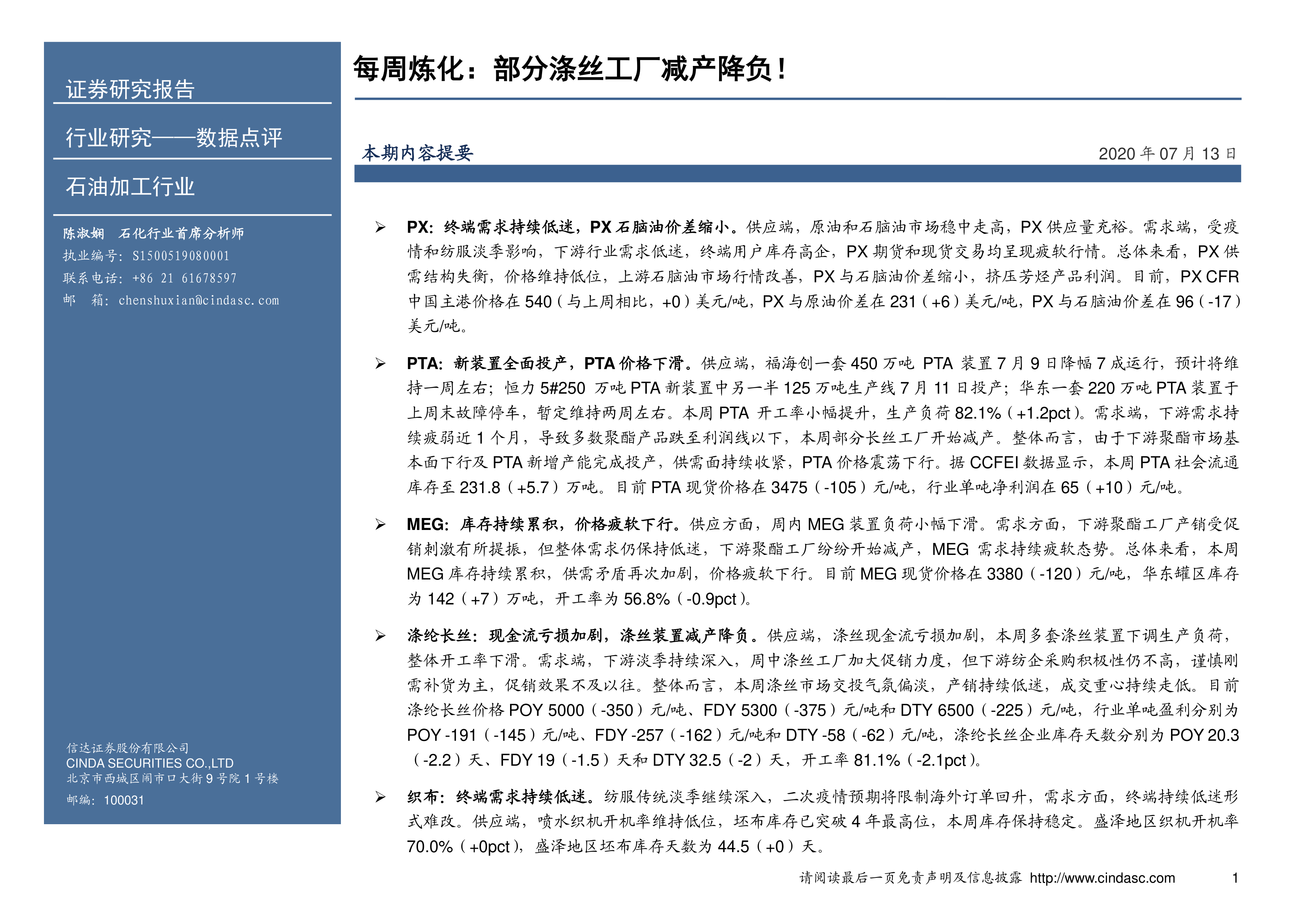 本报告核心观点指出,当前炼化产业链面临终端需求持续低迷与部分环节产能过剩的双重压力。受疫情及纺服传统淡季影响,下游聚酯、涤纶长丝及织布等行业需求持续疲弱,导致产品价格普遍下行,库存高企。上游PX、PTA、MEG等产品虽有供应端调整,但整体供需结构失衡,价格承压。特别是PTA环节,新装置的全面投产进一步加剧了市场供应压力。