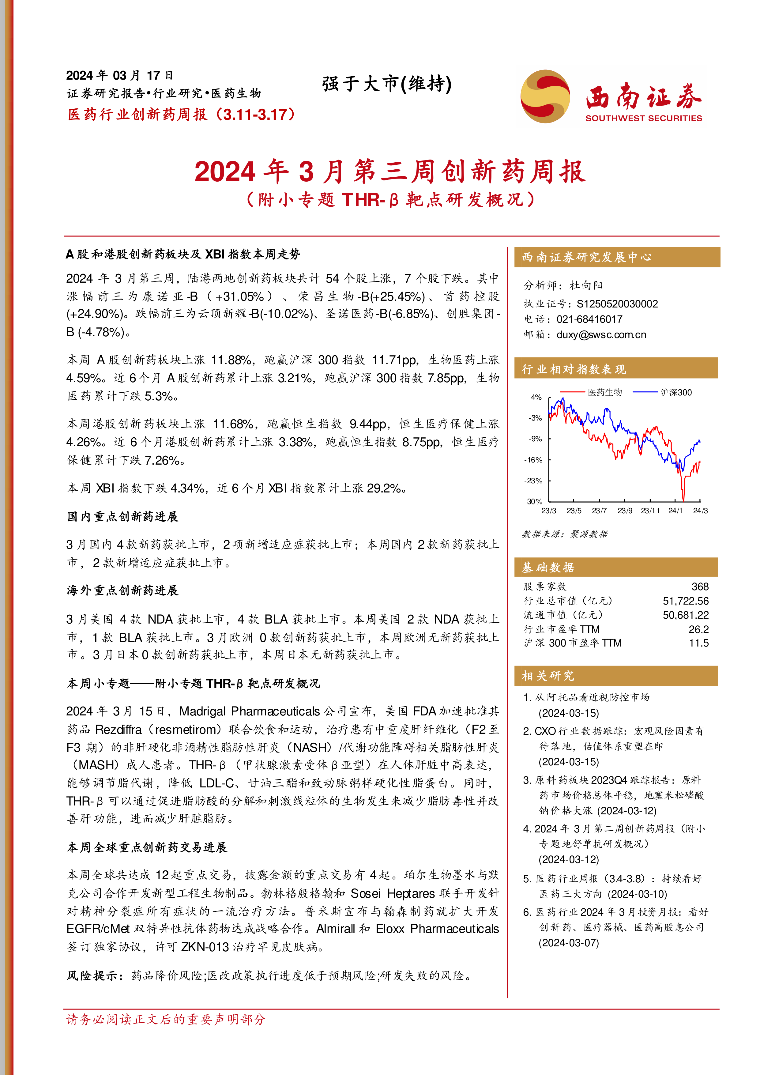 2024年3月第三周创新药周报(附小专题THR-β靶点研发概况)