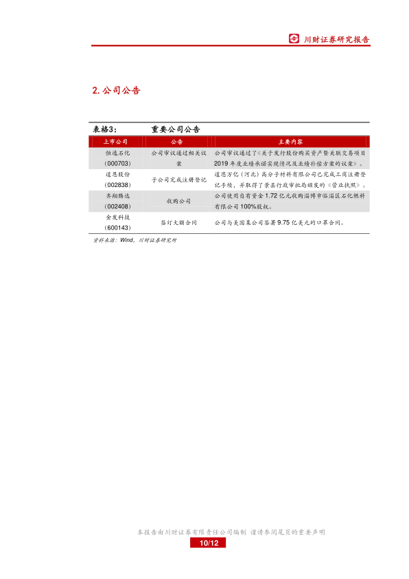 本周石油化工行业受到油价回升的积极影响,乙烯、丙烯等产品价格上涨。同时,行业政策层面也出现了一些值得关注的动态,如能源管理体制改革的呼声再起,以及成品油消费税改革的讨论。投资者应关注油价波动、政策变化以及相关公司的经营动态,以便更好地把握投资机会。