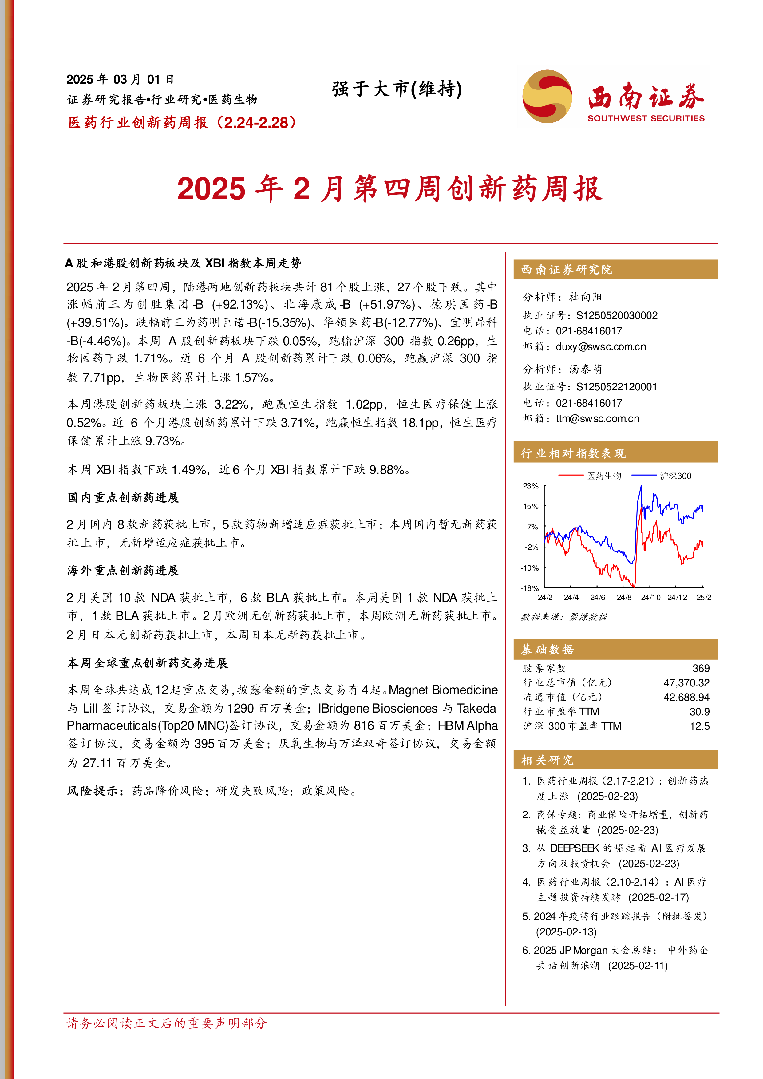 2025年2月第四周创新药周报