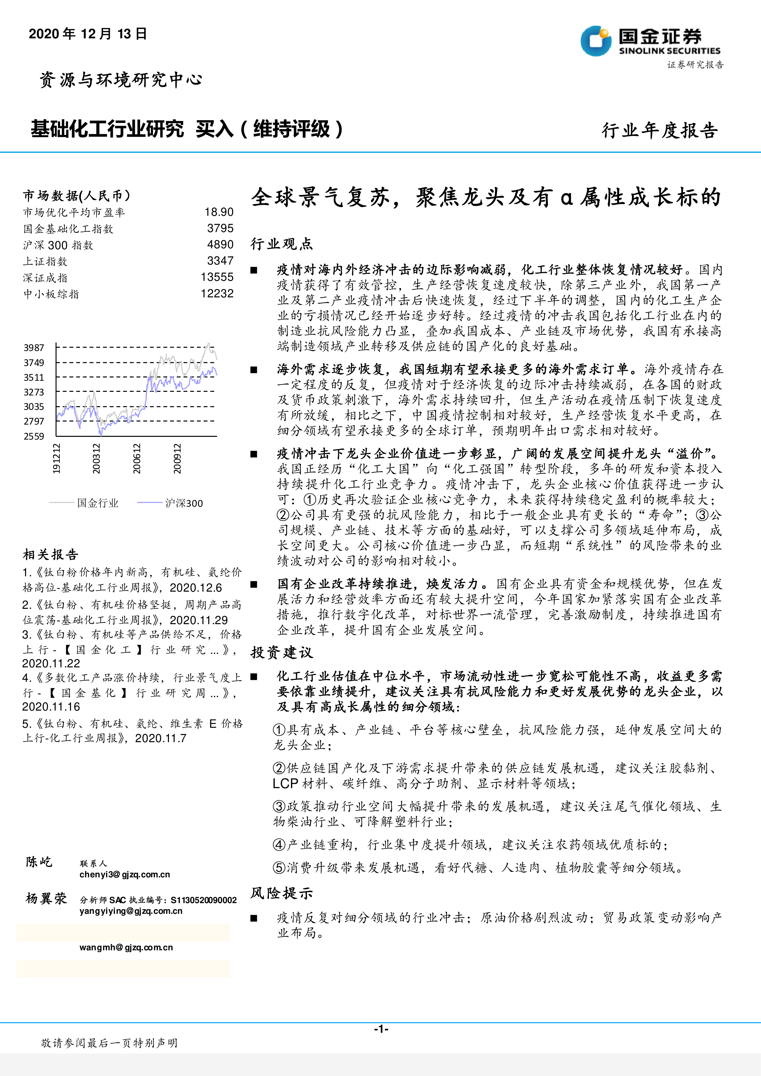 基础化工行业研究:全球景气复苏,聚焦龙头及有α属性成长标的