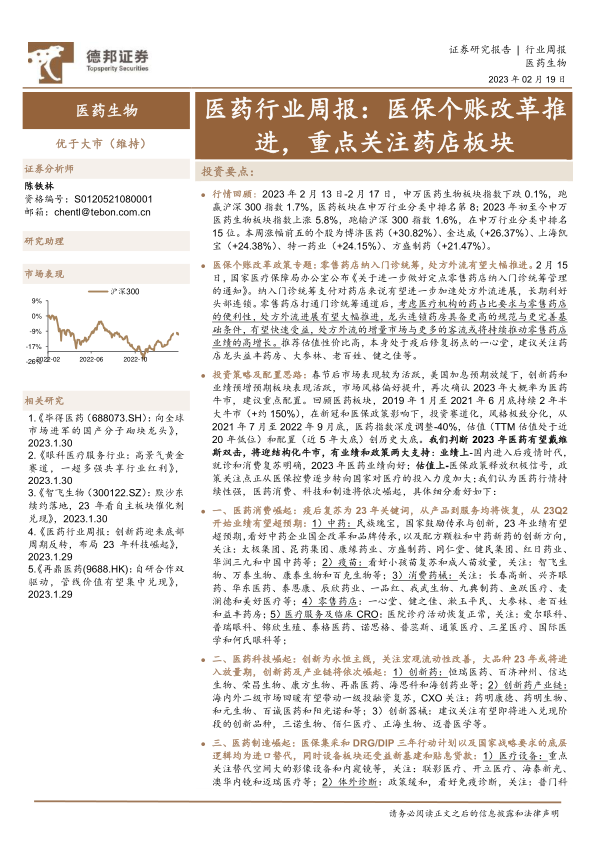 医药行业周报:医保个账改革推进,重点关注药店板块