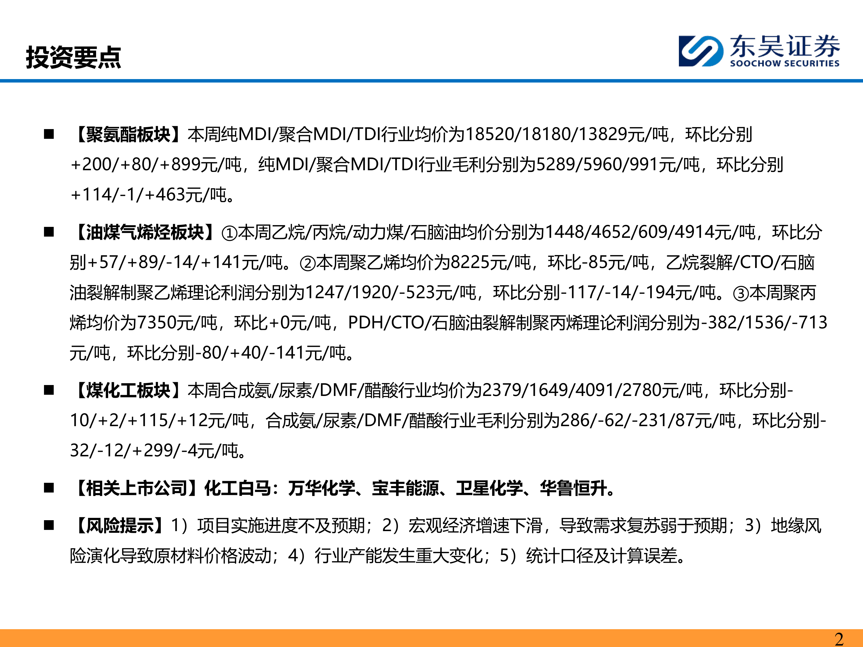 本报告分析了近期基础化工市场的周度数据,重点关注聚氨酯、油煤气烯烃和煤化工三大板块的价格、毛利变动以及相关上市公司的表现。