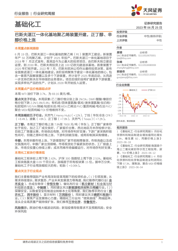 基础化工行业研究周报:巴斯夫湛江一体化基地聚乙烯装置开建,正丁醇、辛醇价格上涨