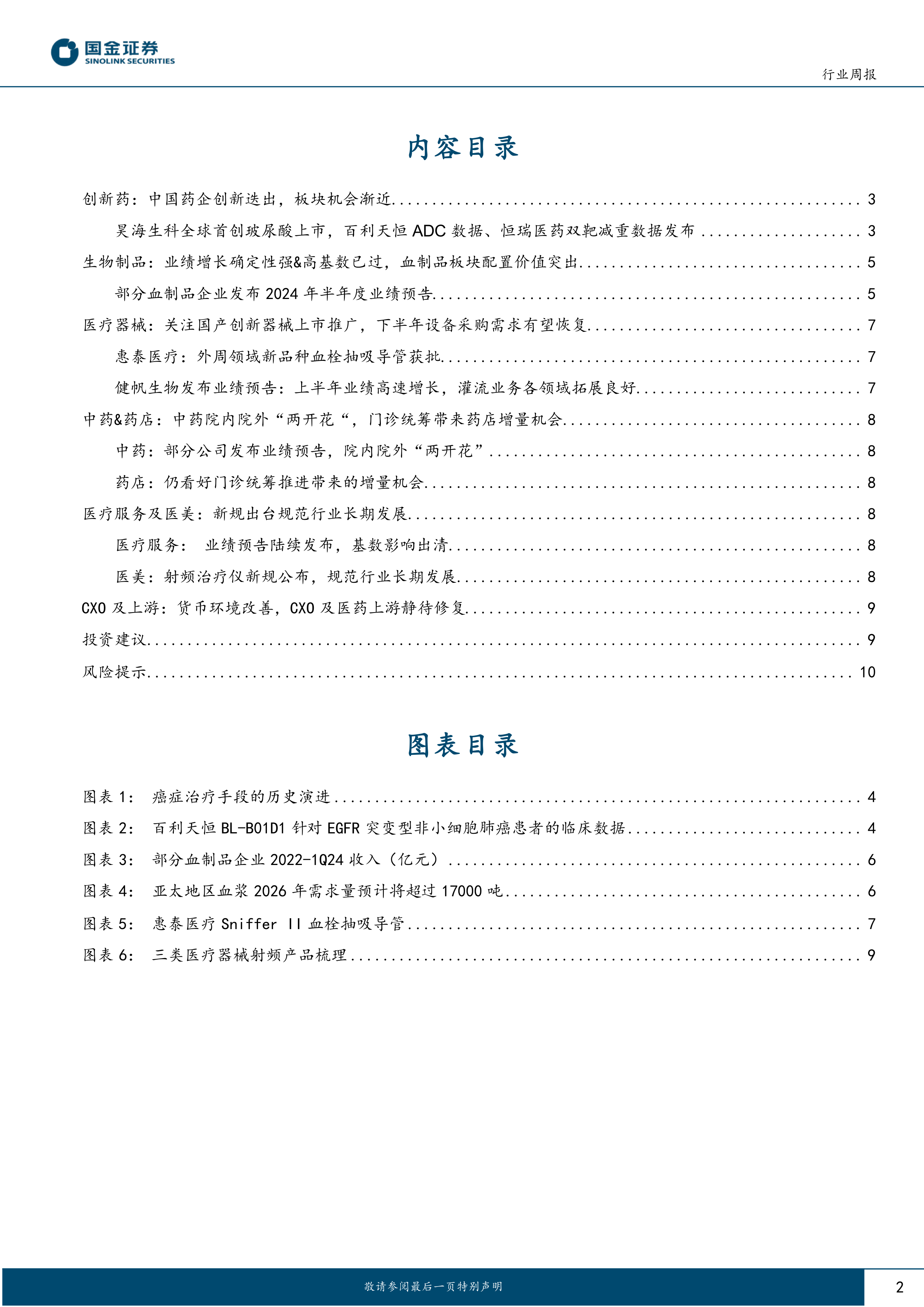 当前行业正处于中报业绩披露窗口期,已公布预告和快报的企业数据显示,血液制品和部分中药等防守型板块表现突出,与上半年子行业景气度感知相符。同时,健帆生物、美年健康等前期景气度底部反转的标的也受到市场广泛关注。结合医保结算周期、政策面预期改善和业绩恢复,以及机构医药持仓处于低位,报告认为医药板块第三季度将迎来改善行情,并有望实现超过三年的长期调整反转。对第二季度业绩持合理谨慎预期,而对第三季度及下半年则持乐观增长预期。在行业配置上,建议重点关注创新高景气赛道(如GLP-1、ADC/双抗、电生理/内窥镜)和院内高性价比药械复苏(如高性价比生物制品、精麻药物、化学发光诊断、医疗设备、原料药、手套行业)。