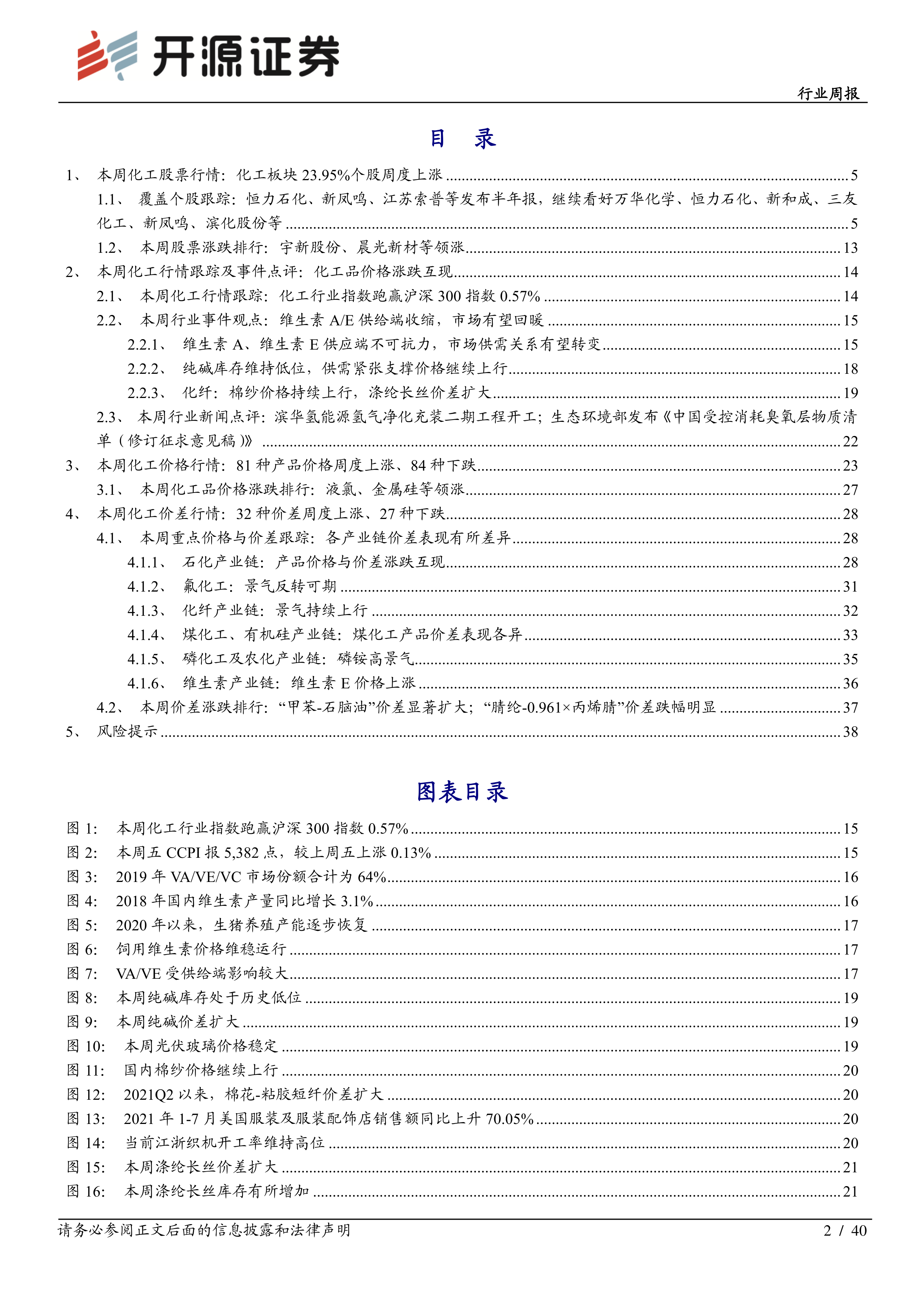 本周化工行业研究报告的核心观点指出,维生素A(VA)和维生素E(VE)市场因供给端收缩而有望迎来价格企稳回升,纯碱和化纤行业则持续保持高景气度。报告维持对化工行业的“看好”投资评级,强调了供给侧变化、下游需求复苏以及政策导向对行业景气度的关键影响。