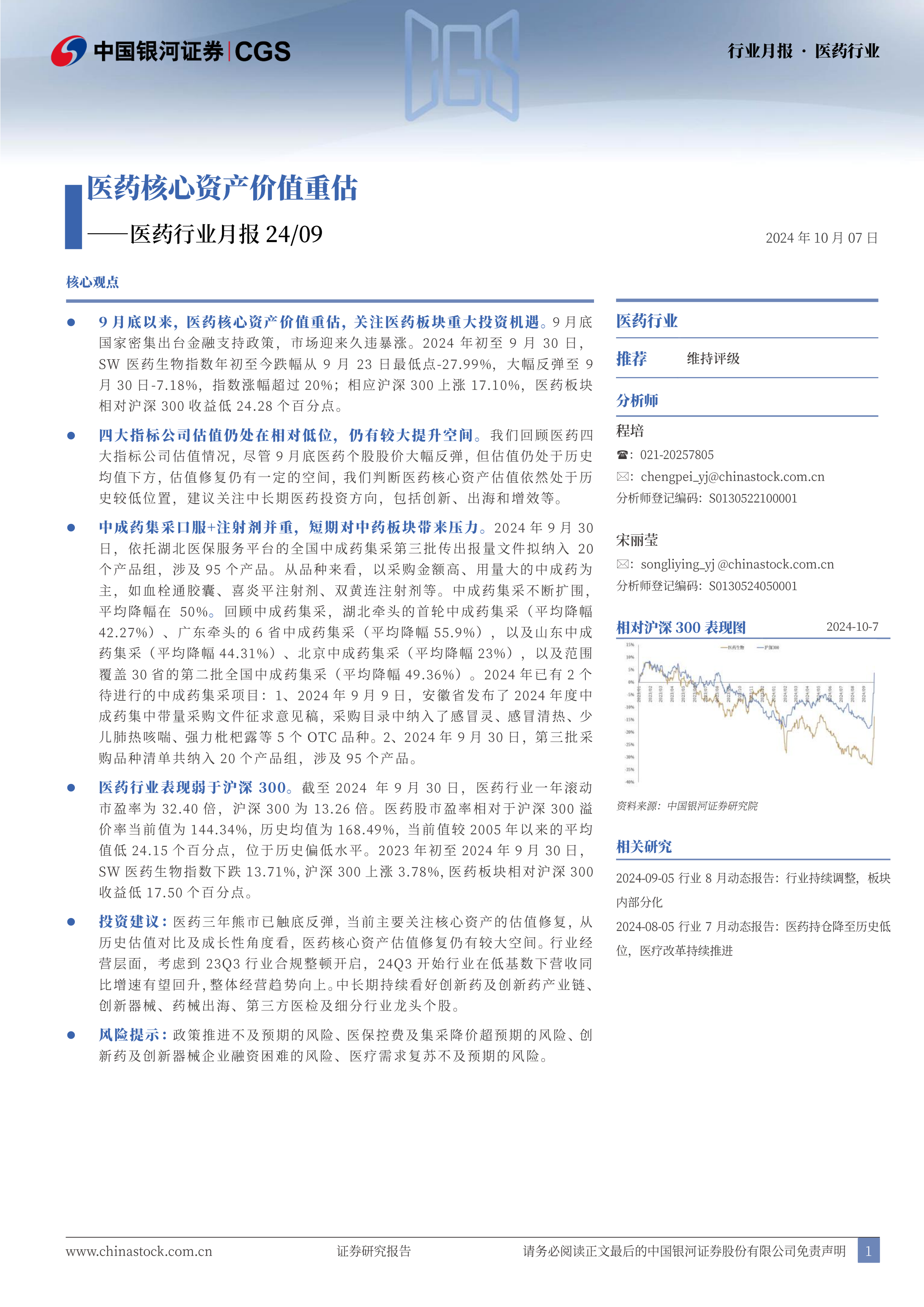 医药行业月报24/09:医药核心资产价值重估