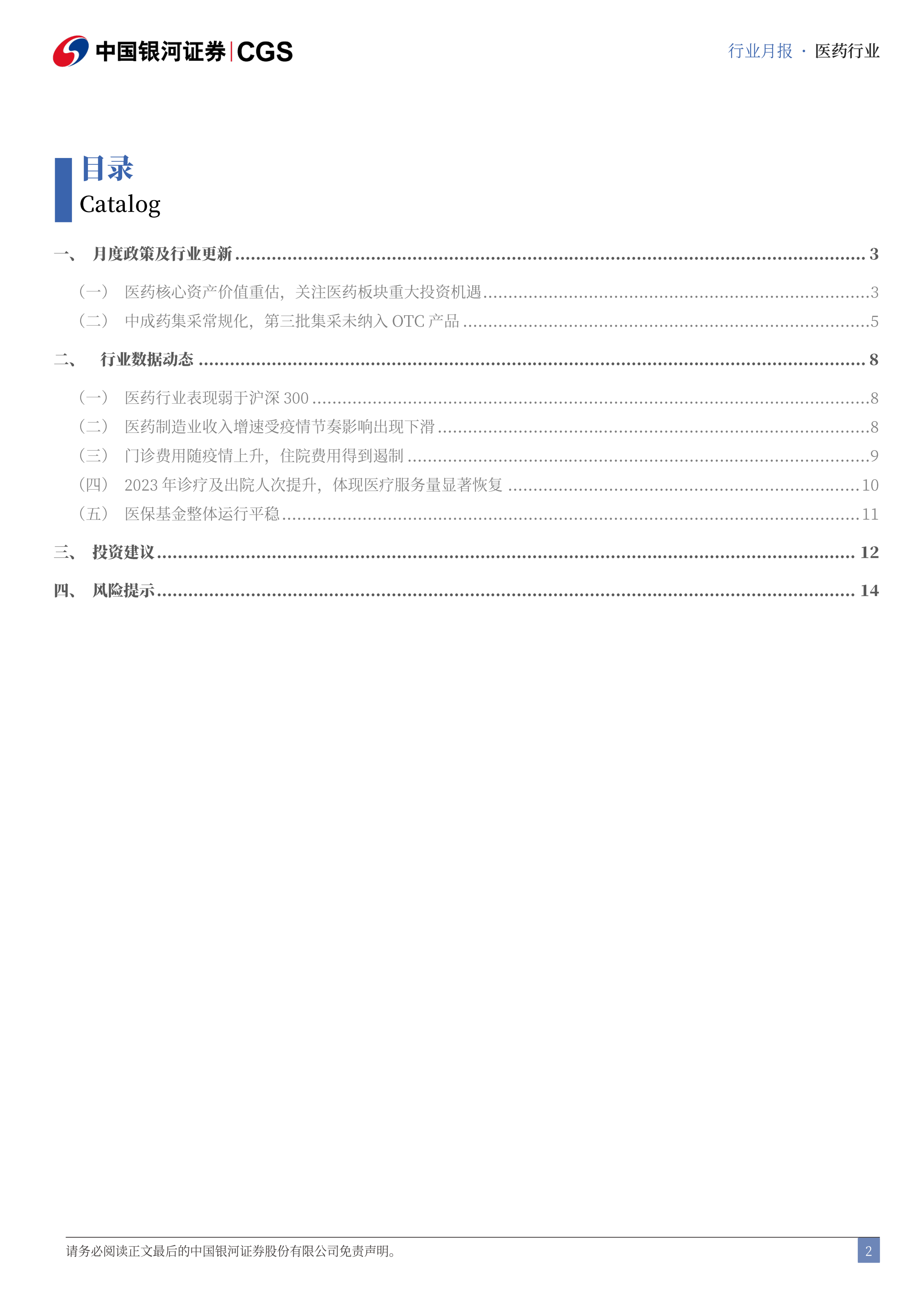 风险提示:政策推进不及预期的风险、医保控费及集采降价超预期的风险、创新药及创新器械企业融资困难的风险、医疗需求复苏不及预期的风险。