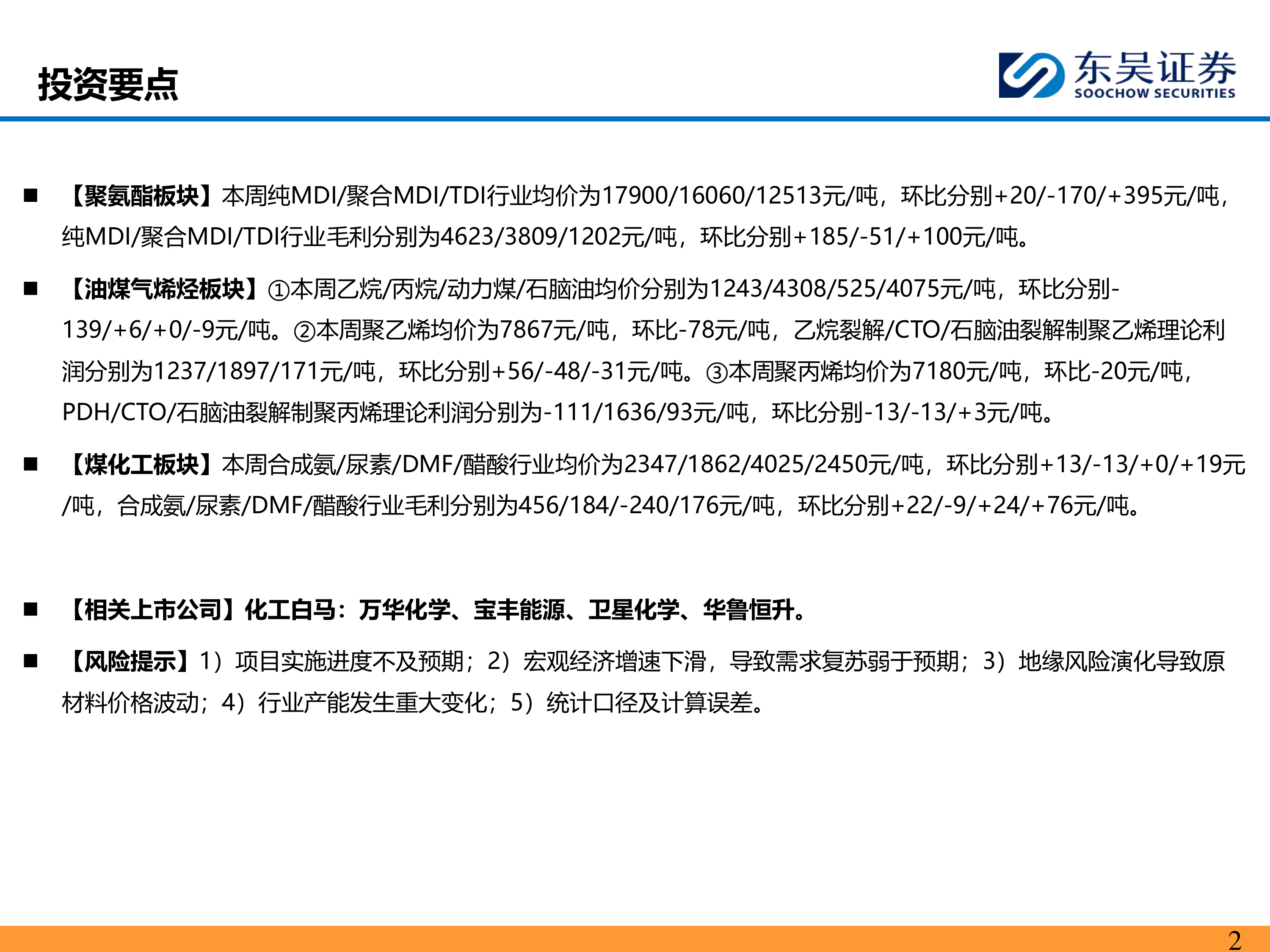 【相关上市公司】化工白马:万华化学、宝丰能源、卫星化学、华鲁恒升。