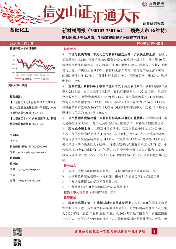 新材料周报:新材料板块强劲反弹,生物基塑料碳足迹国标下月实施
