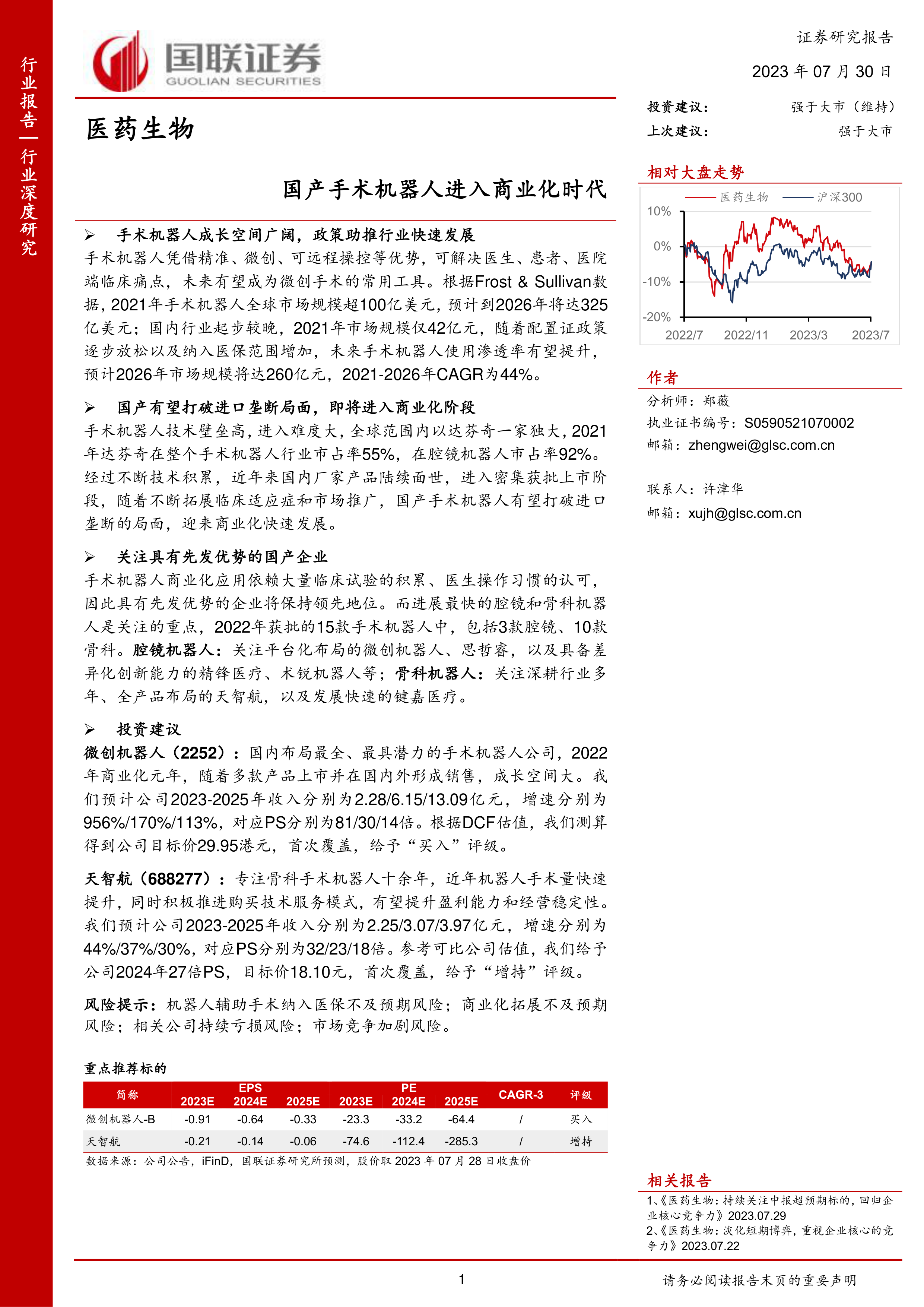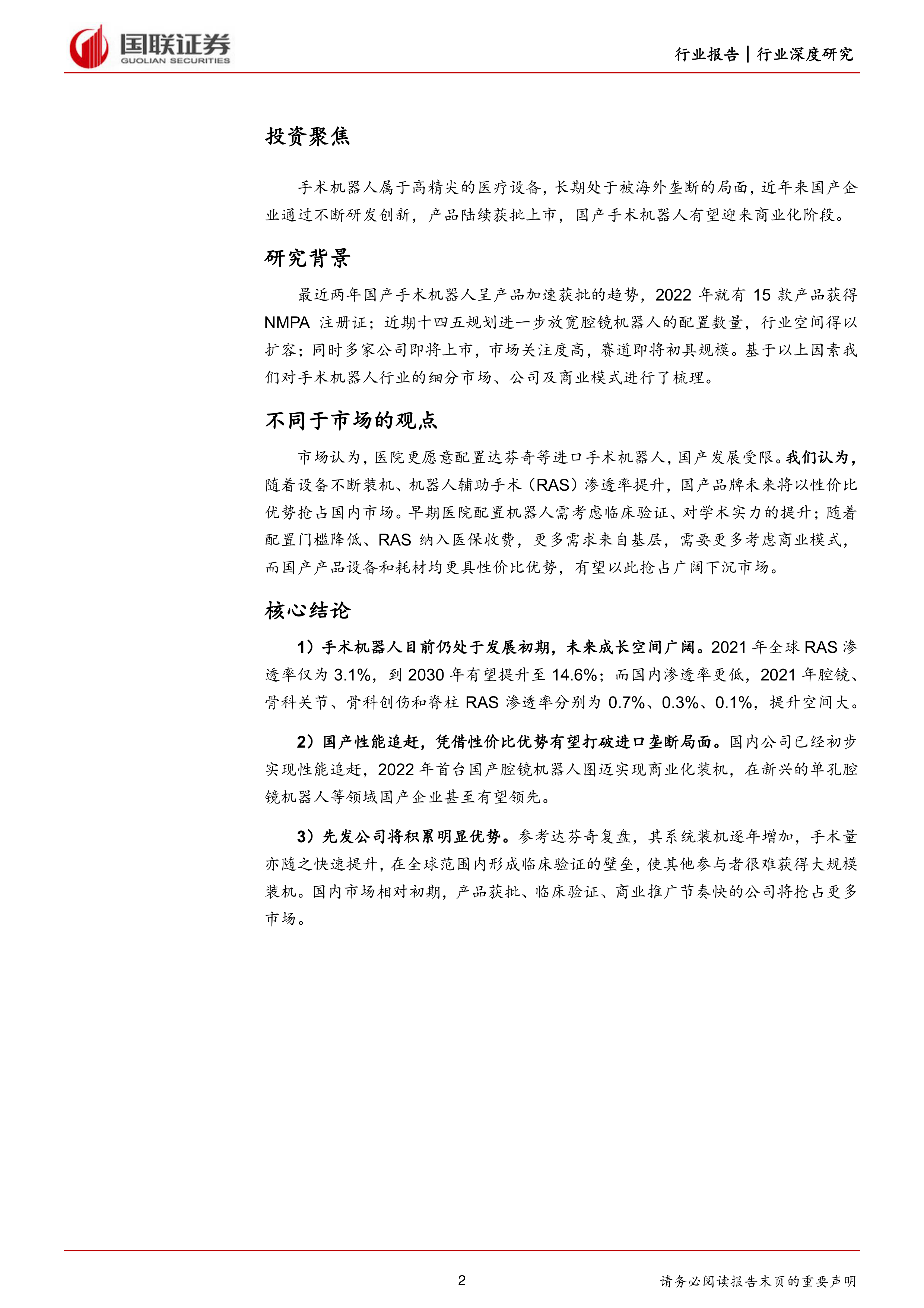 风险提示:机器人辅助手术纳入医保不及预期风险;商业化拓展不及预期风险;相关公司持续亏损风险;市场竞争加剧风险。