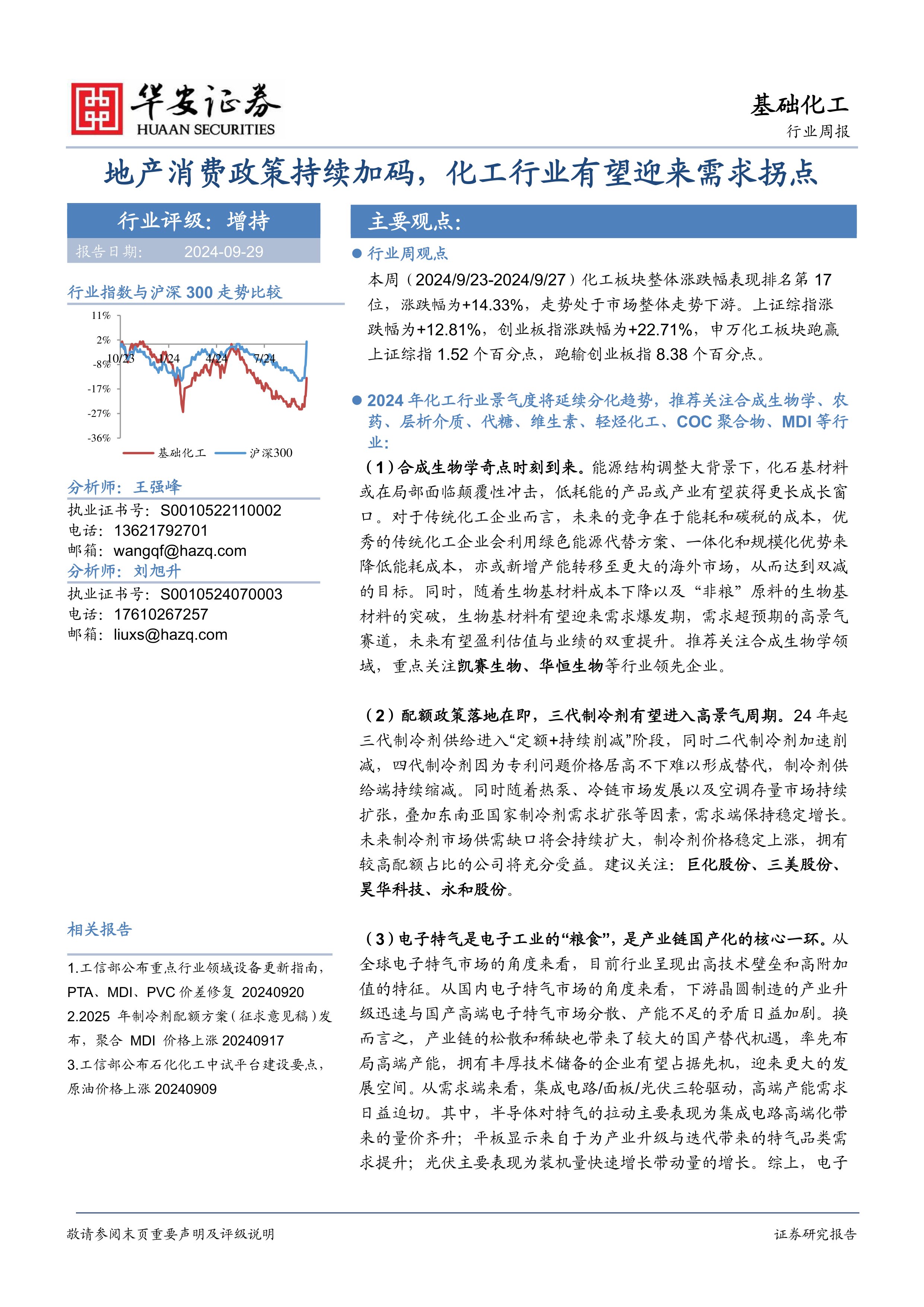 基础化工行业周报:地产消费政策持续加码,化工行业有望迎来需求拐点