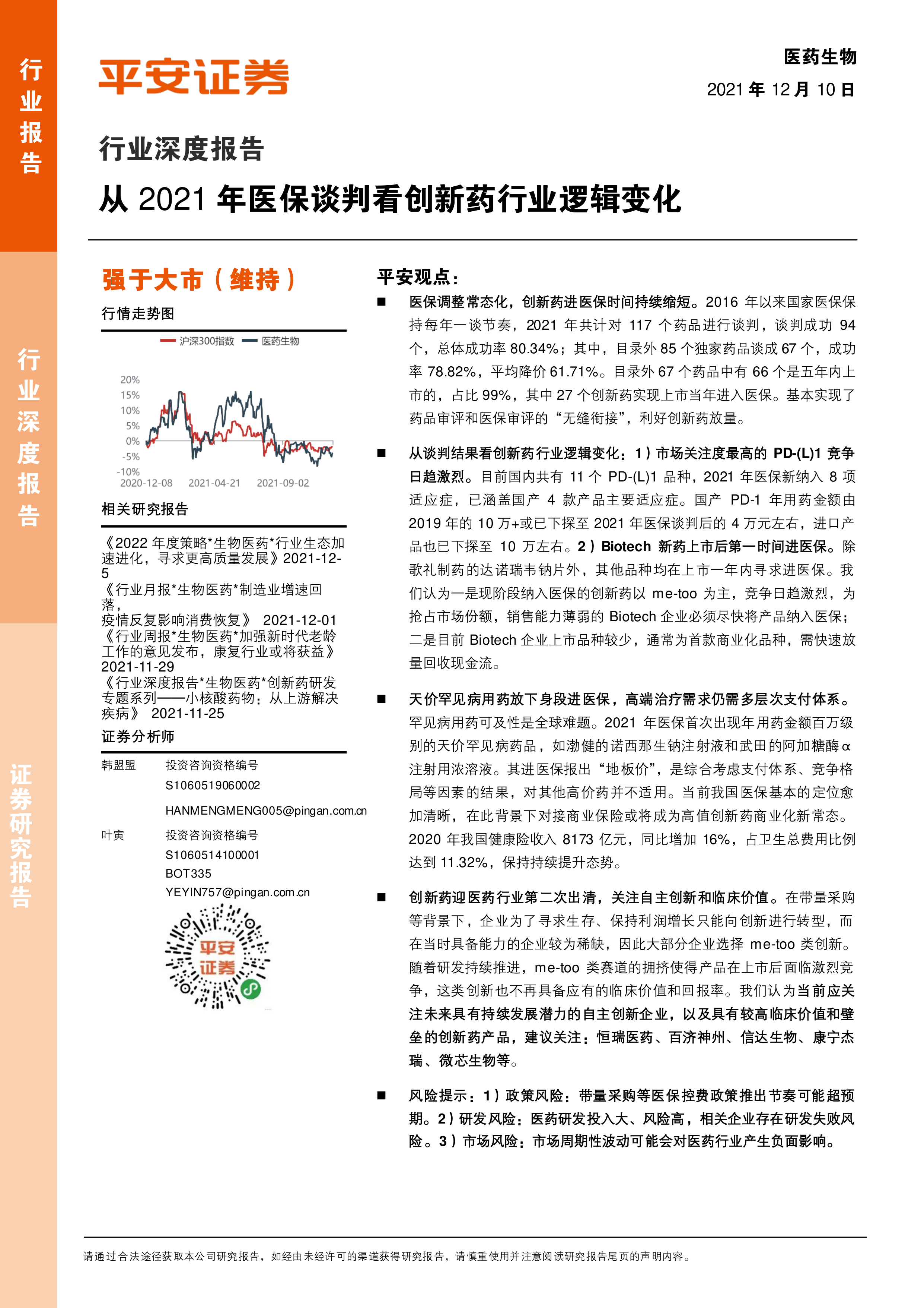 医药生物行业深度研究:从2021年医保谈判看创新药行业逻辑变化