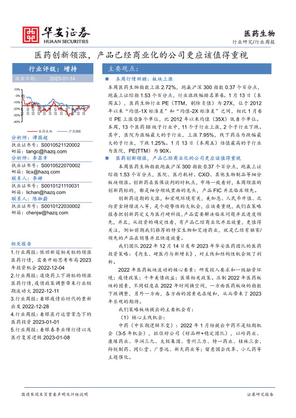 我们团队2022年12月14日发布2023年华安医药团队的医药投资策略:《内生、硬医疗与新增长》,对主线和结构性机会做了剖析。