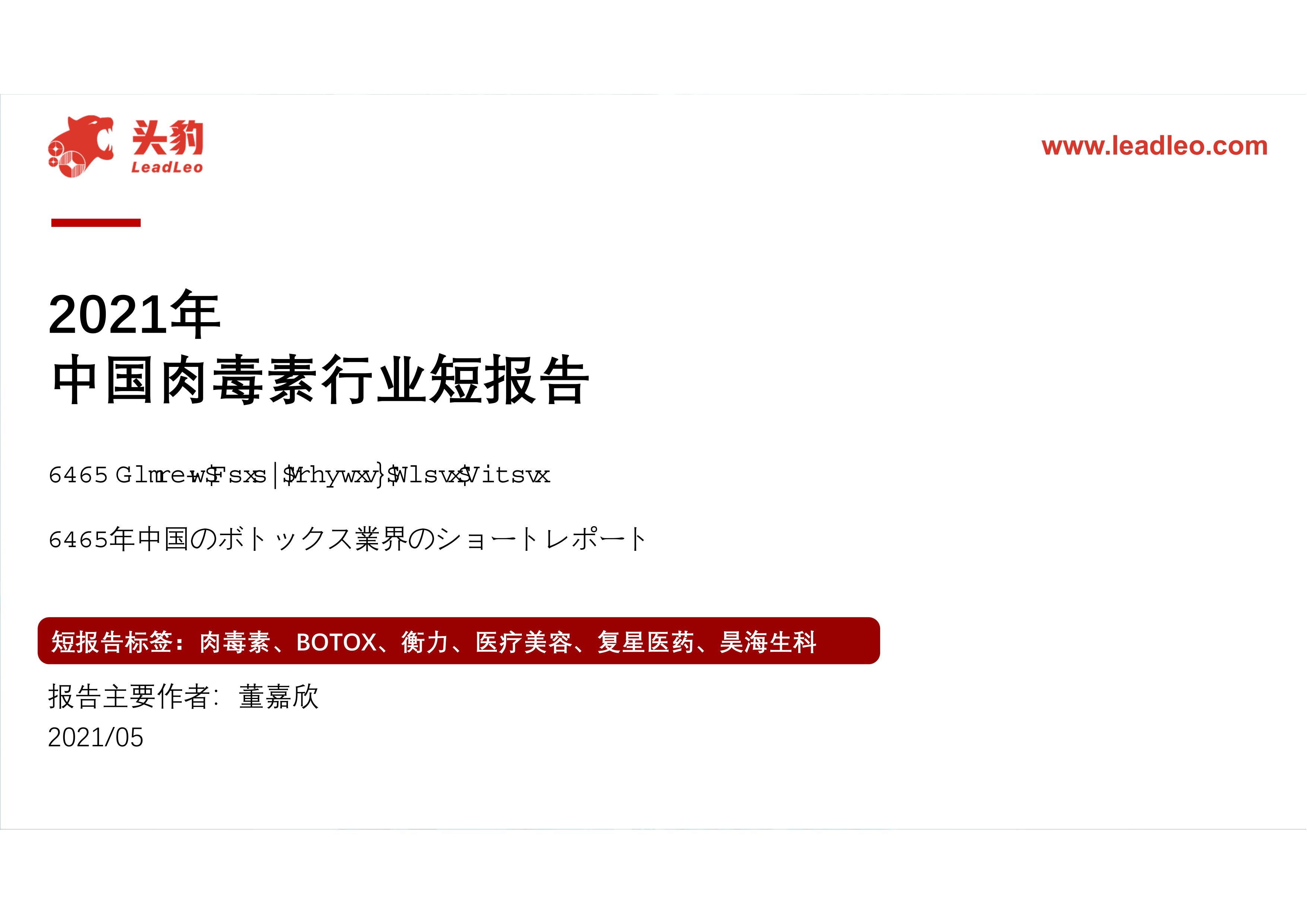 2021年中国肉毒素行业短报告