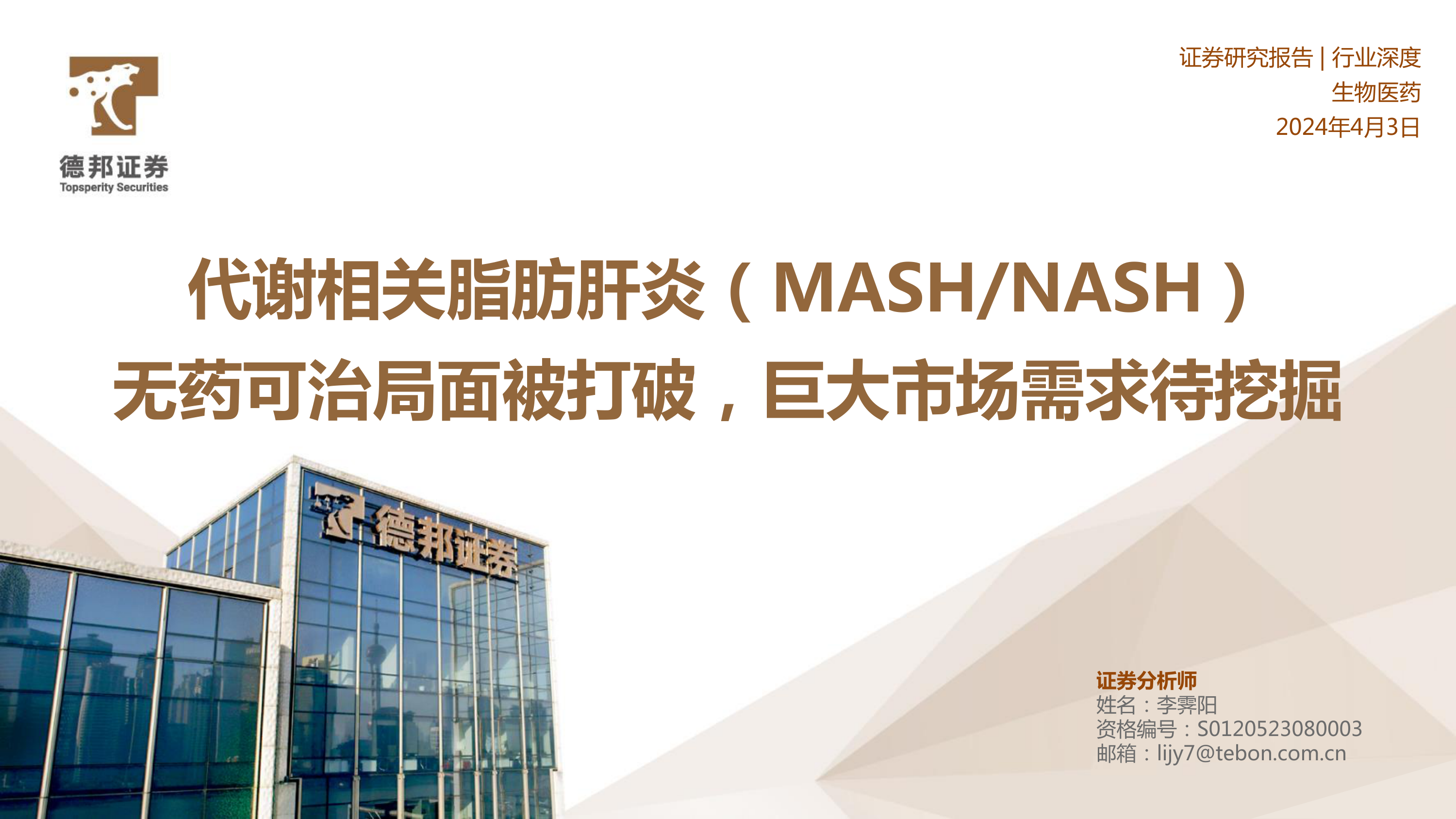 生物医药行业深度:代谢相关脂肪肝炎(MASH/NASH):无药可治局面被打破,巨大市场需求待挖掘