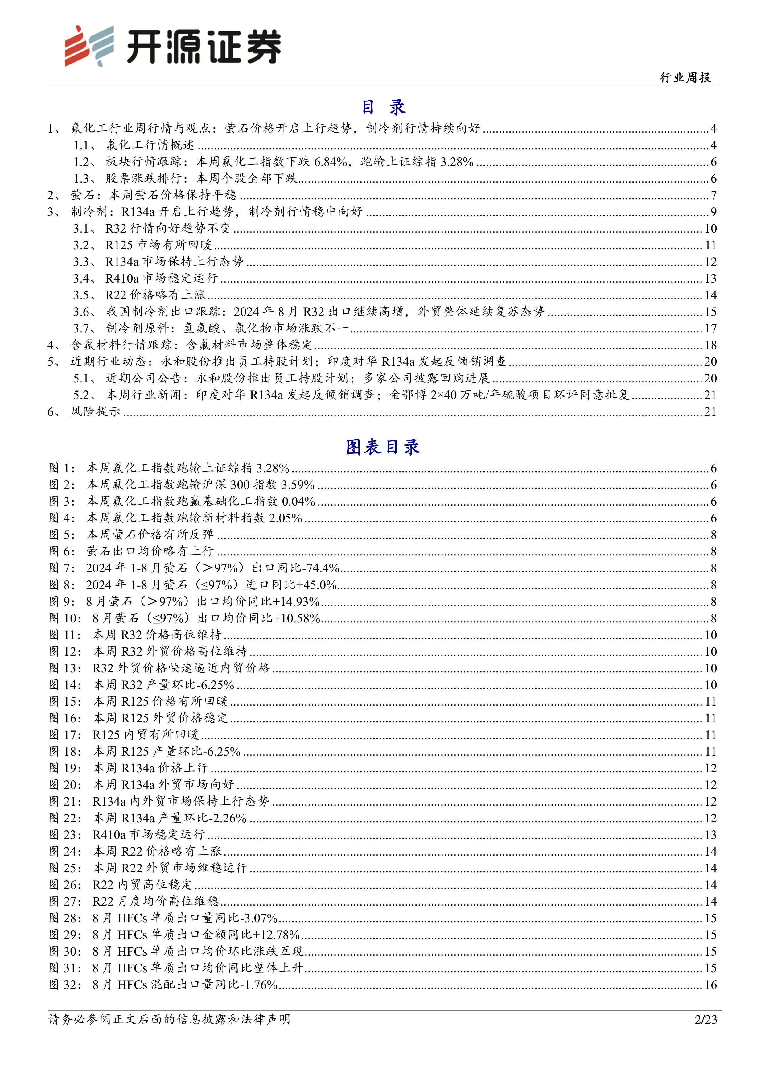2024年8月R32出口继续高增,外贸整体延续复苏态势。