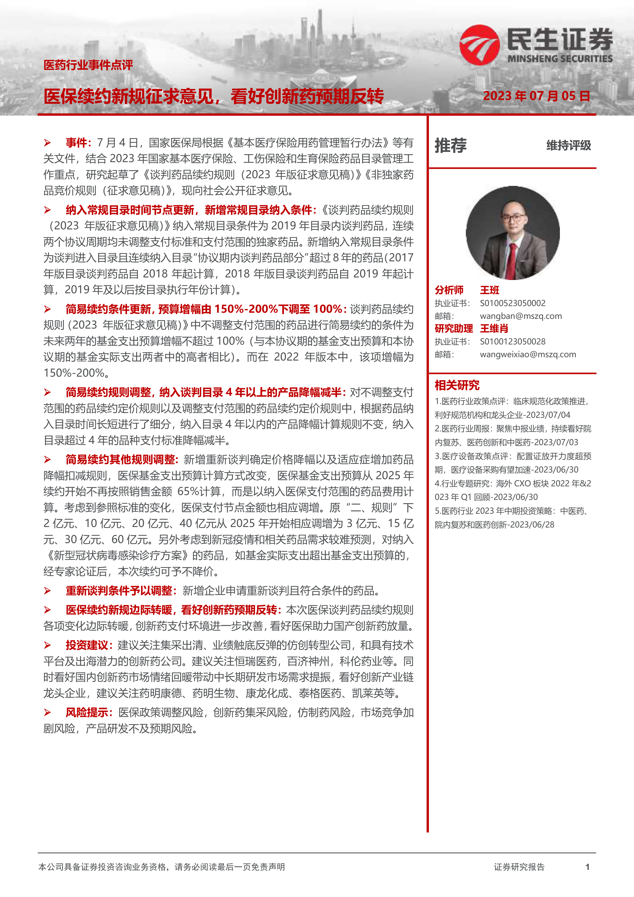 医药行业事件点评:医保续约新规征求意见,看好创新药预期反转
