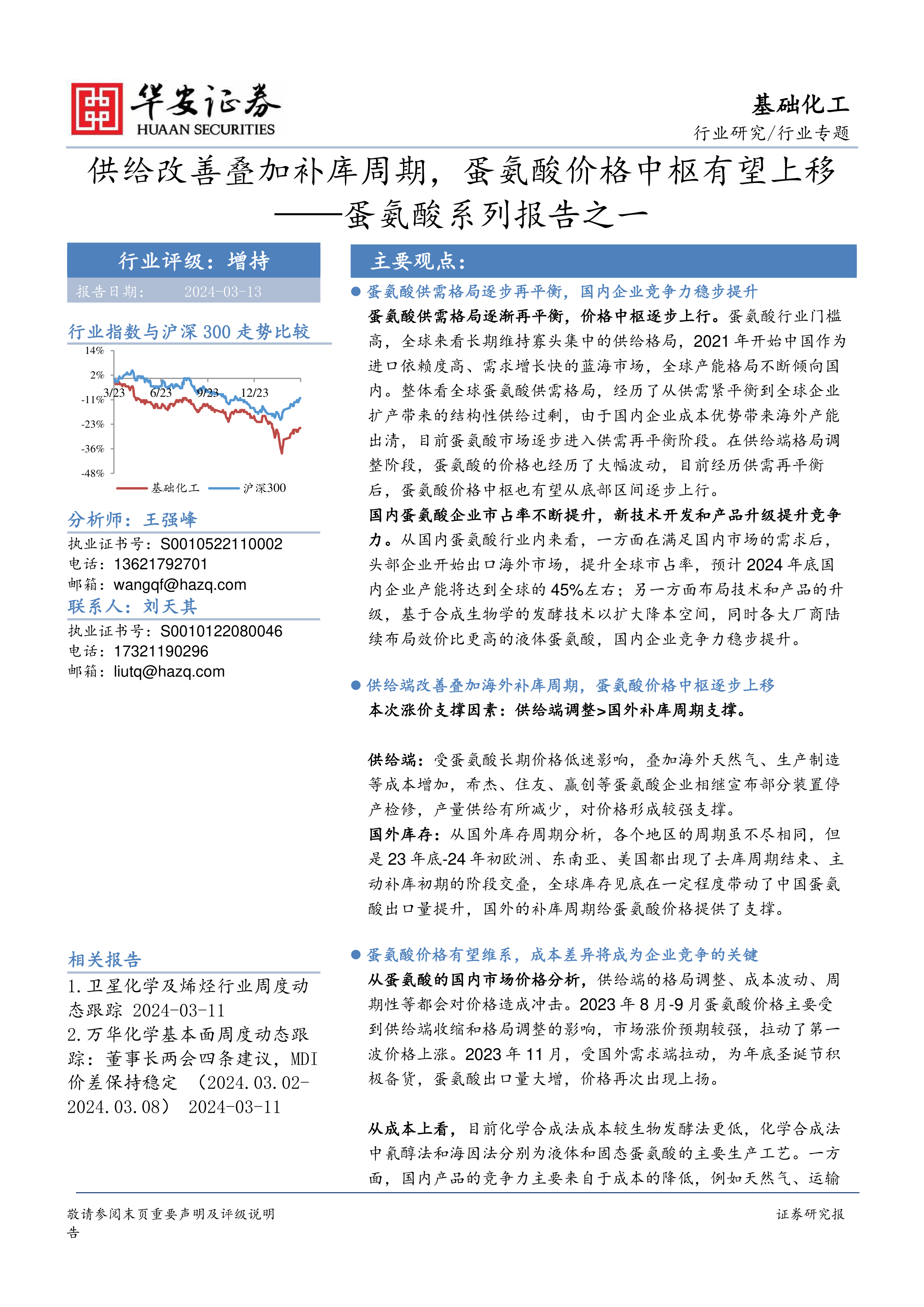 蛋氨酸系列报告之一:供给改善叠加补库周期,蛋氨酸价格中枢有望上移
