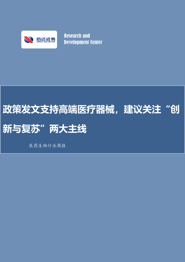 医药生物行业周报:政策发文支持高端医疗器械,建议关注“创新与复苏”两大主线