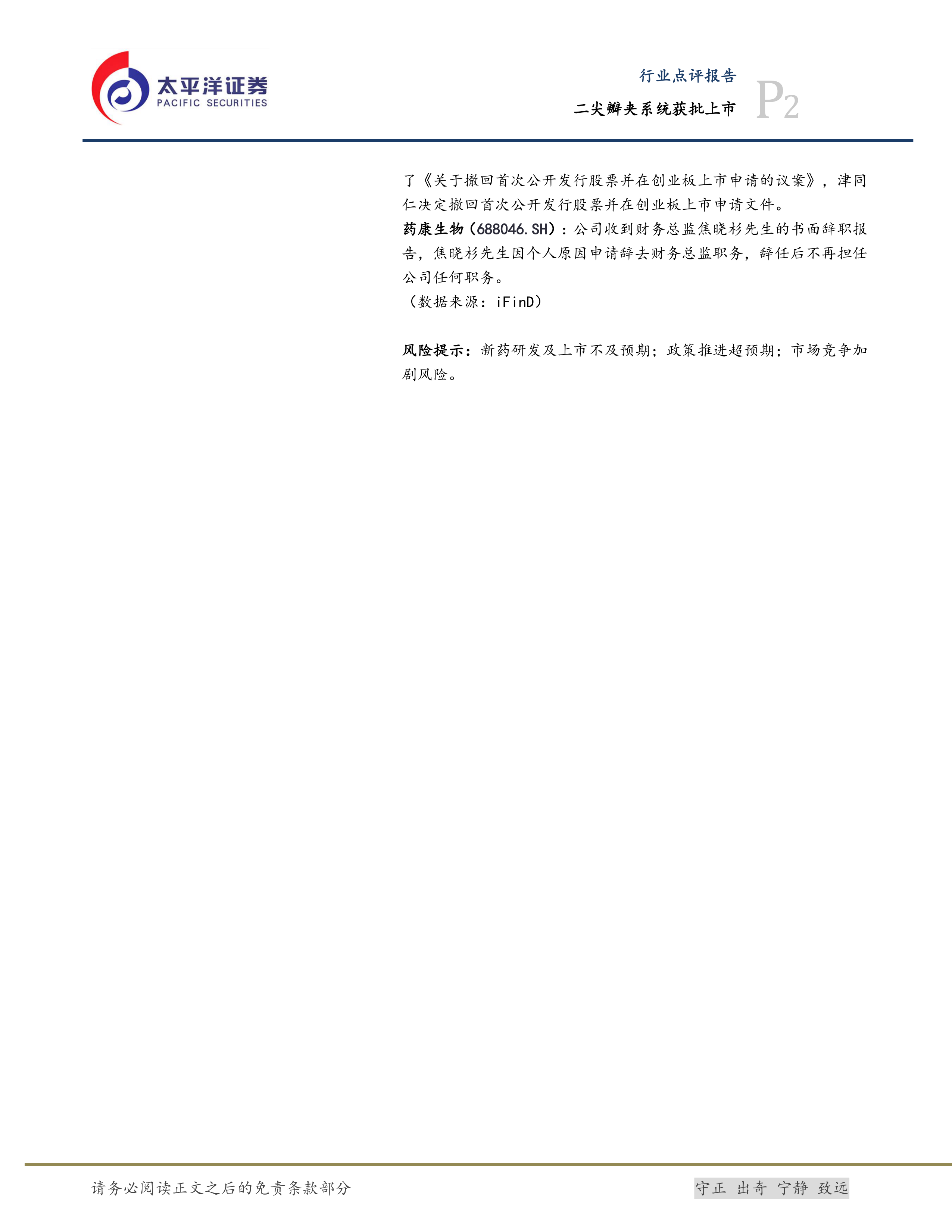 风险提示:新药研发及上市不及预期;政策推进超预期;市场竞争加剧风险。