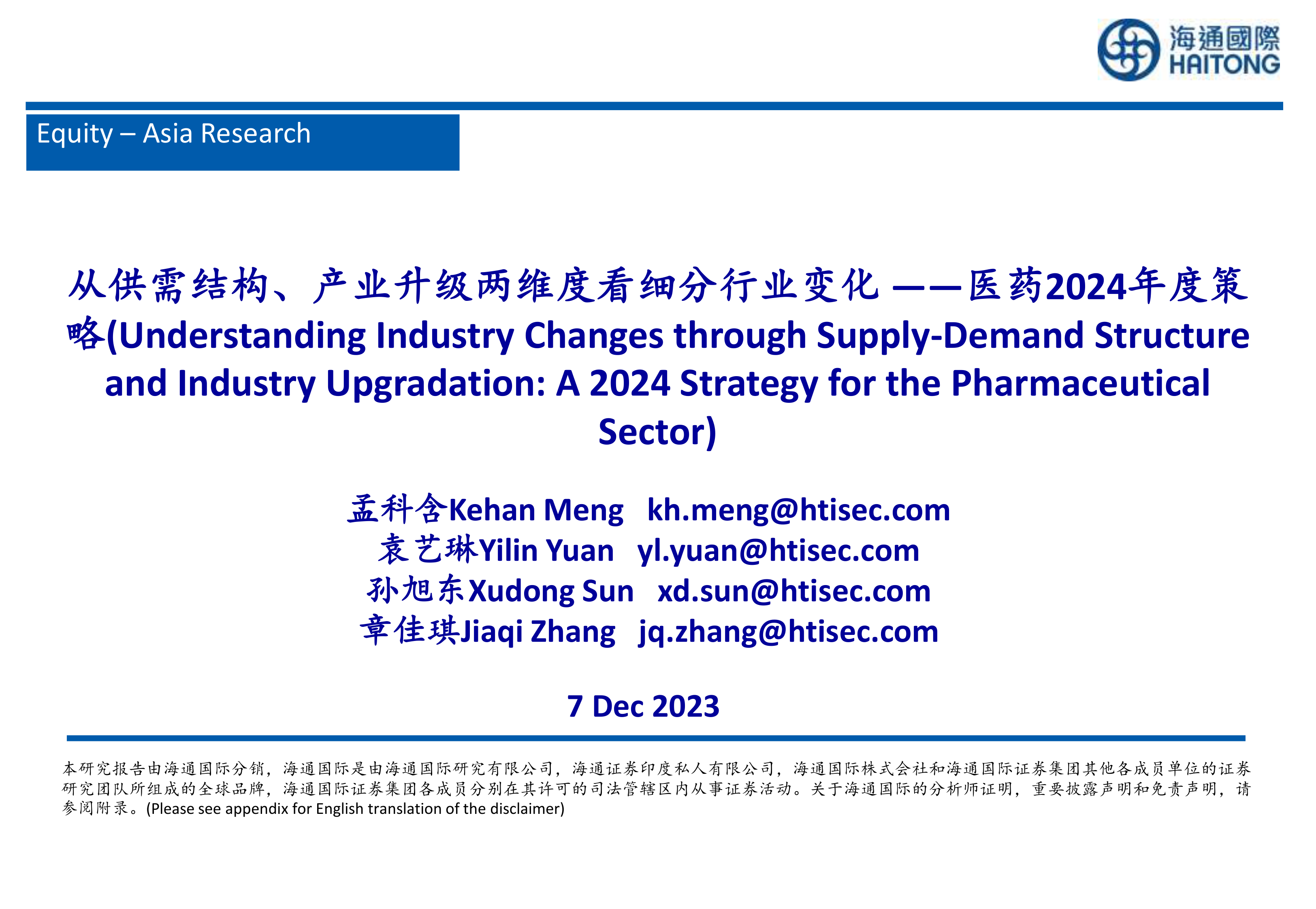 风险提示:行业政策风险、药品研发不达预期的风险,估值波动风险等。