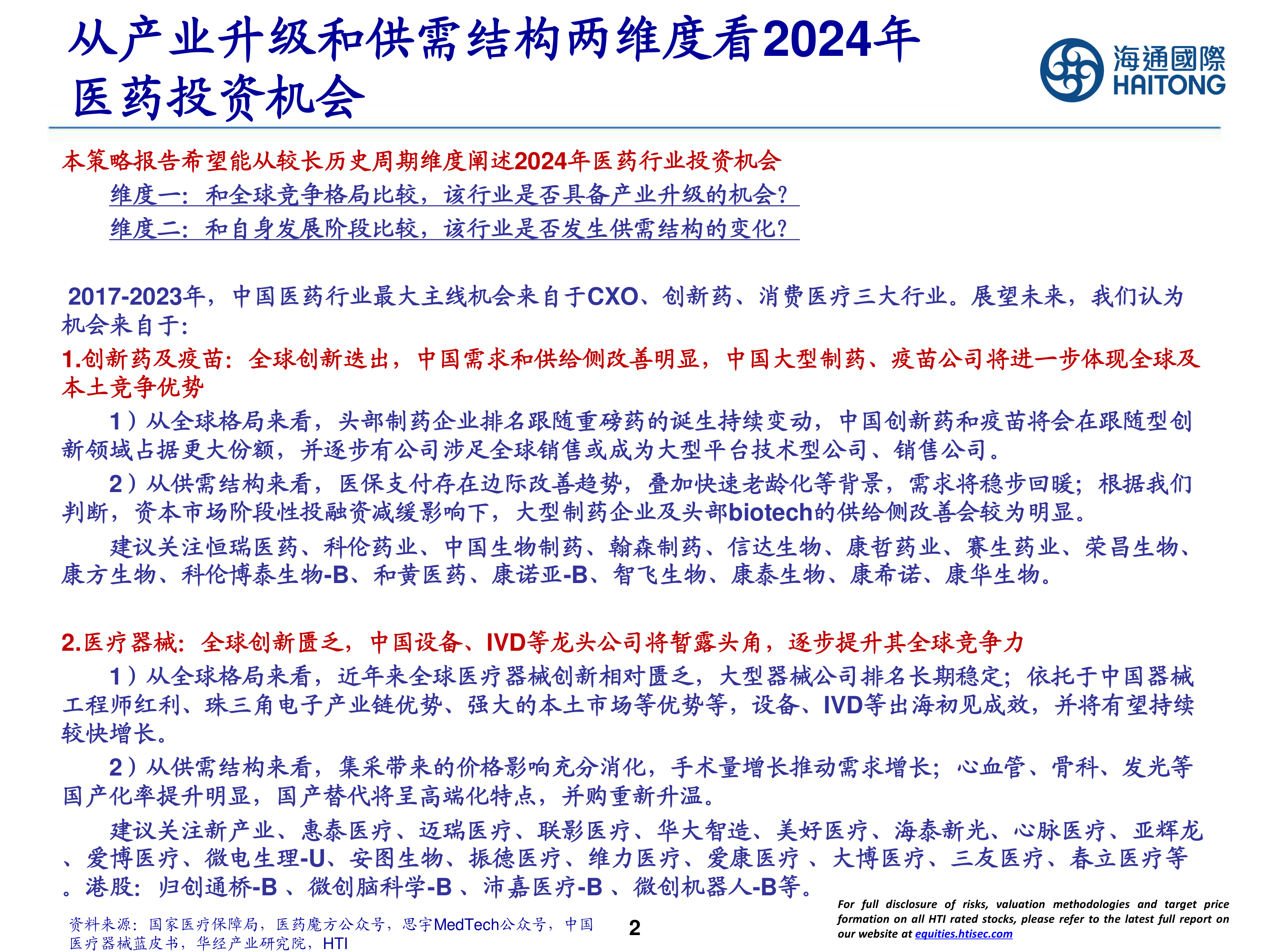 2.医疗器械:全球创新匮乏,中国设备、 IVD等龙头公司将暂露头角,逐步提升其全球竞争力