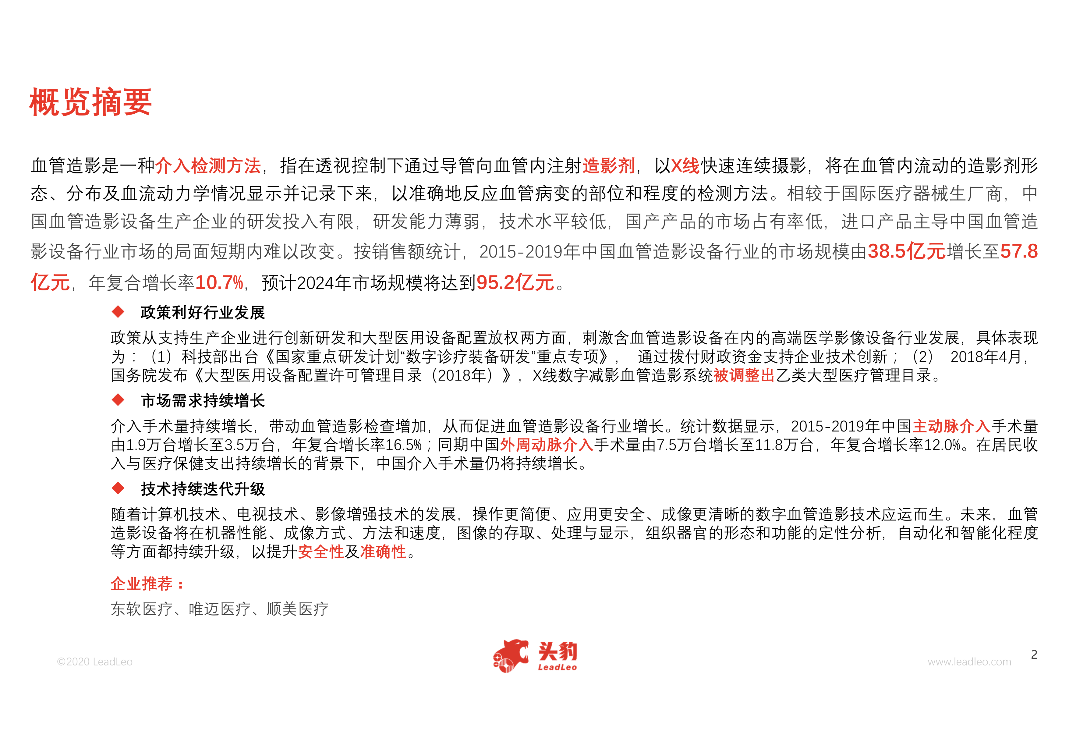 本报告深入分析了2020年中国血管造影设备行业,指出该市场正经历快速增长,预计到2024年市场规模将达到95.2亿元。政策支持、介入手术量的持续增长以及技术的不断迭代升级是行业发展的主要驱动力。然而,由于本土企业研发投入有限、技术水平相对薄弱,中国市场仍由进口产品主导,国产化替代面临显著挑战。报告强调了人工智能赋能血管造影技术的巨大潜力,并推荐了东软医疗、唯迈医疗和顺美医疗等本土企业,同时警示了产品研发、注册、市场竞争及政策变更等投资风险。